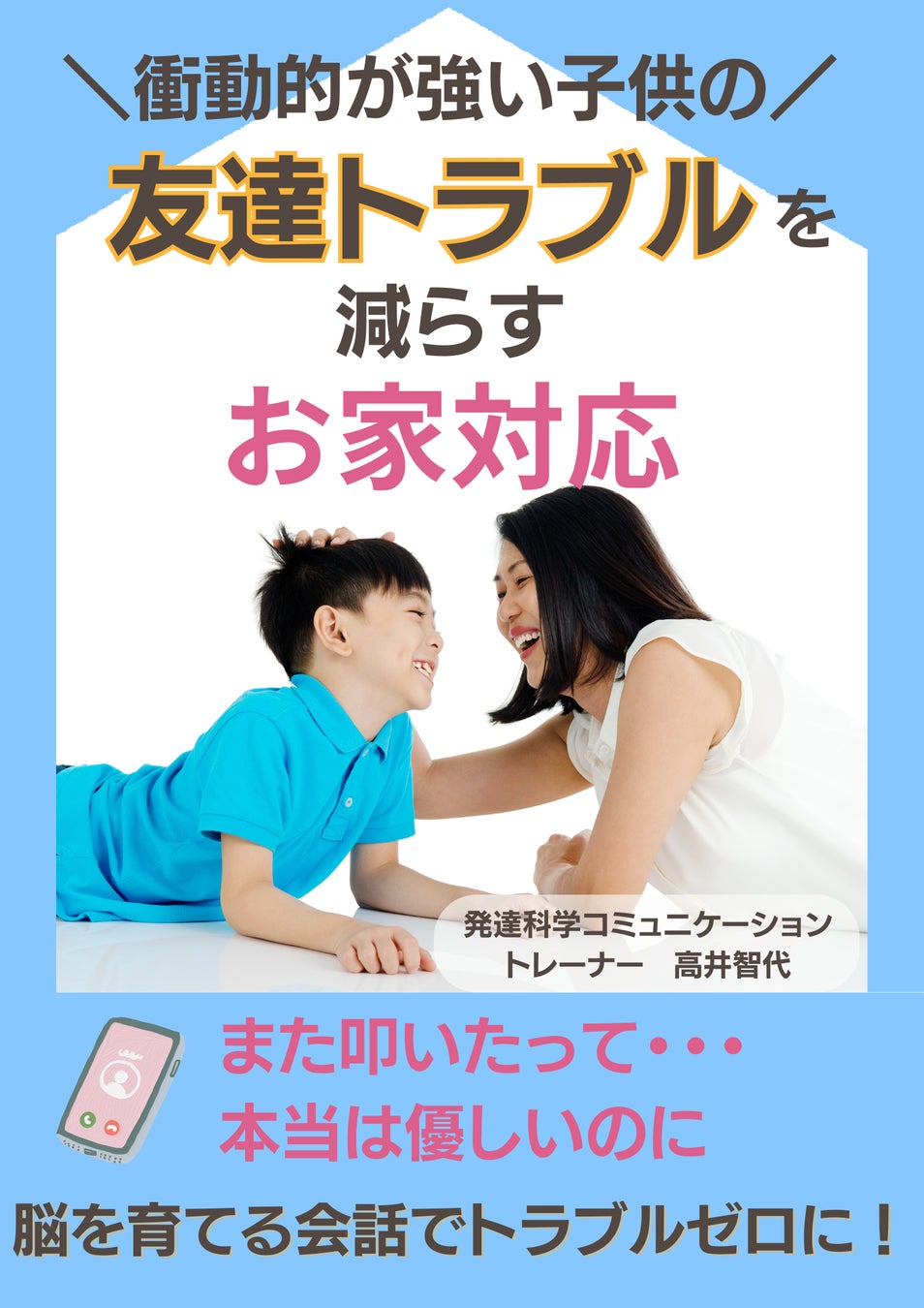 はじめまして 発達科学コミュニケーショントレーナーの高井智代です。衝動性の強い子供に思考力をつける専門家として活動しています。この度は、衝動性が強いことが原因で起こる友達トラブルを解決するお家対応を紹介した電子書籍をリリースいたしました。
