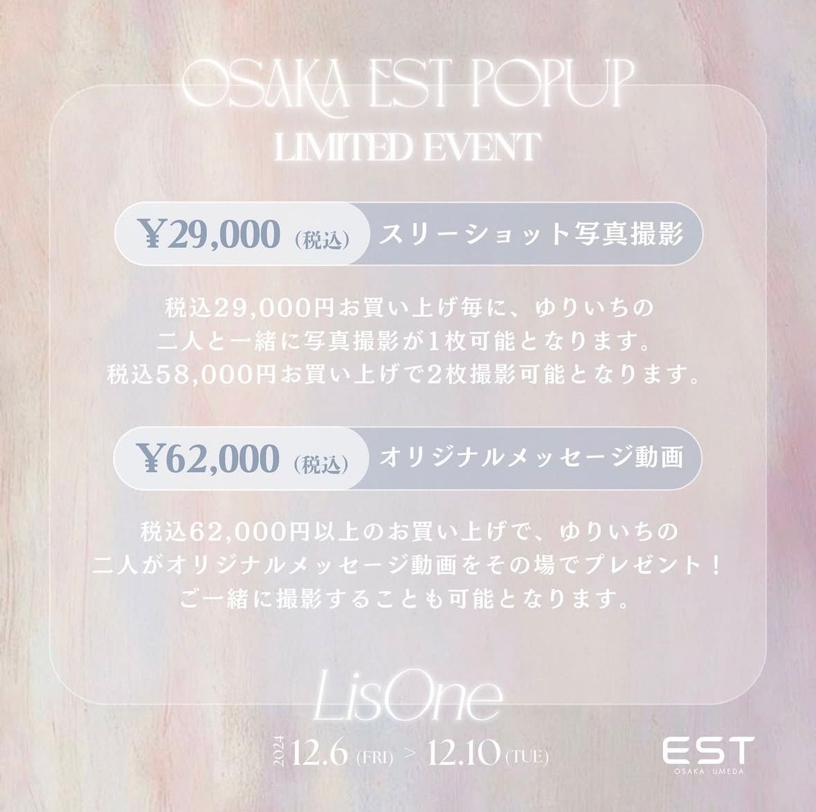 SNS総フォロワー数200万人を超える大人気カップルYouTuber「ゆりいちちゃんねる」のゆりながディレクターを務めるブランドの「LisOne」が初の大阪POPUPイベントを梅田エストにて開催することが決定。