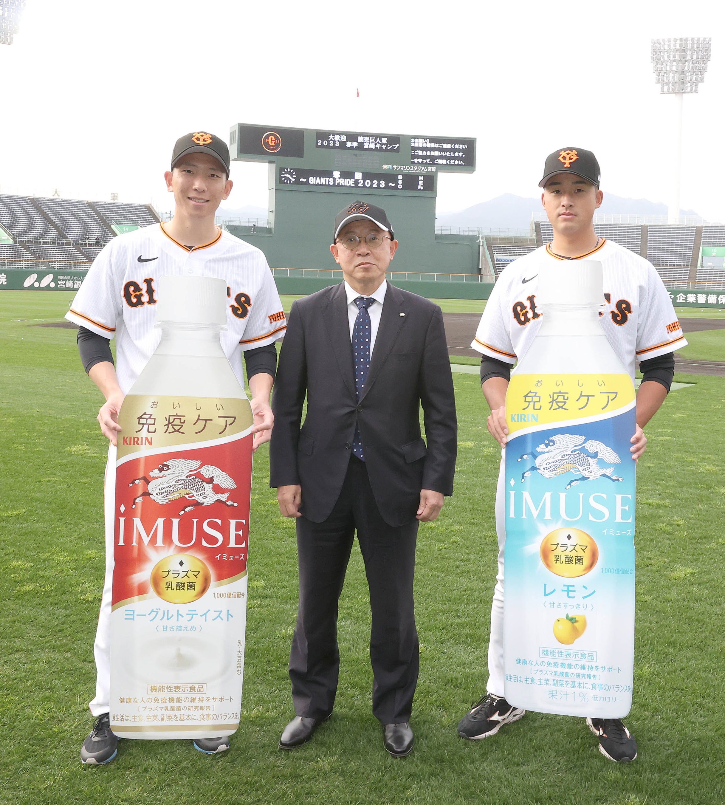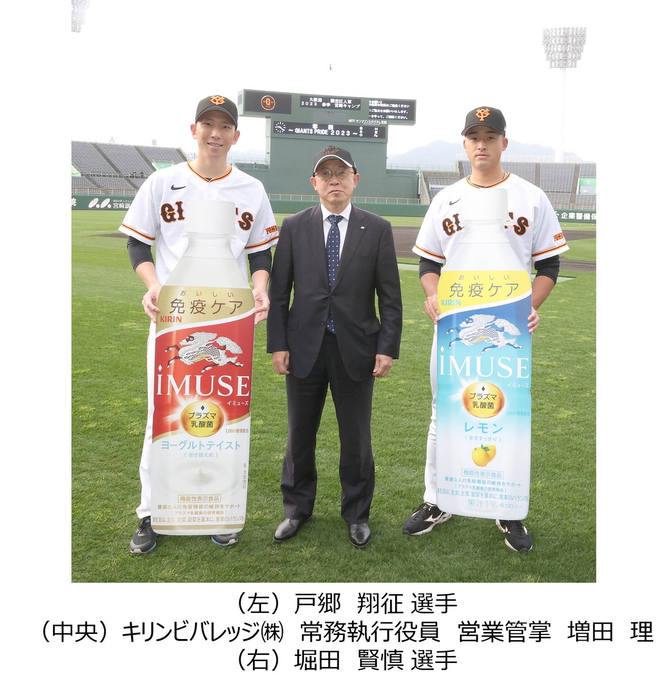 これに伴い、今シーズンの読売巨人軍の活躍を祈念し、選手の体調管理を支援するため、春季キャンプ地にて2023年2月2日(木)に「キリン iMUSE ヨーグルトテイスト」「キリン iMUSE レモン」「キリン iMUSE 水」を計4,800本贈呈しました。また、契約期間中である2023年2月1日(水)~2023年11月30日(木)には、「小岩井 iMUSE ドリンクヨーグルト」「キリン iMUSE 免疫ケアサプリメント」なども随時提供します。