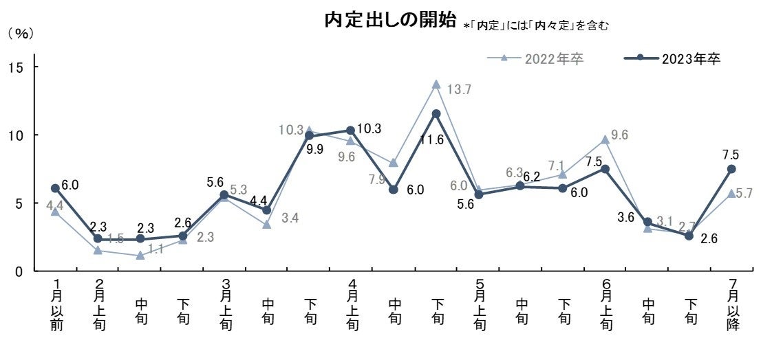 面接開始は3月中旬、内定出しは4月下旬が今年も最多