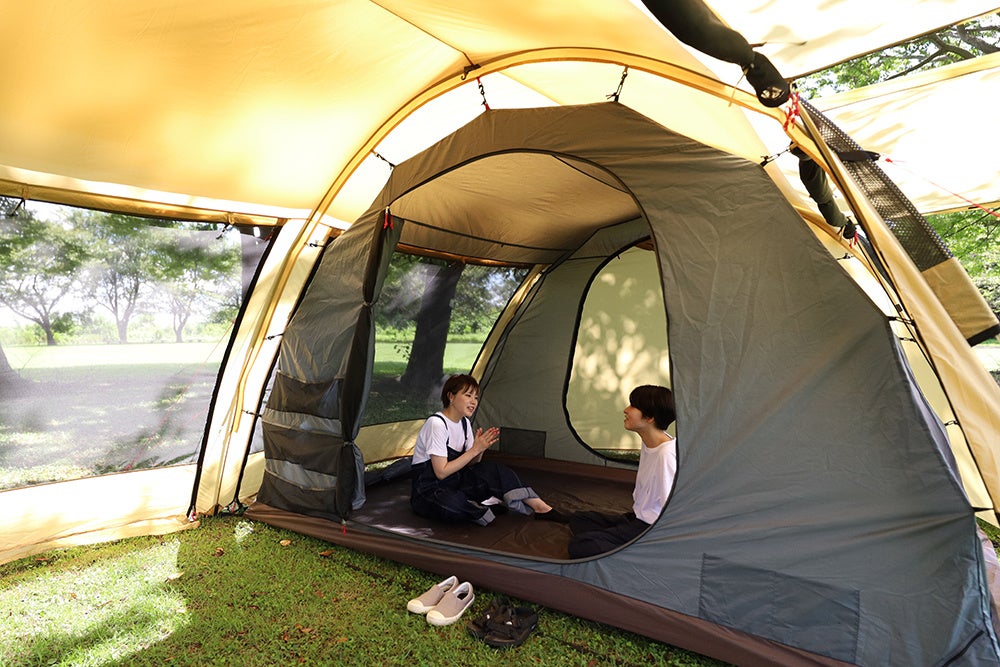 年中快適!ファミリーやグループで楽しめる 抜群の居住性を確保した2ルームテントが新登場。