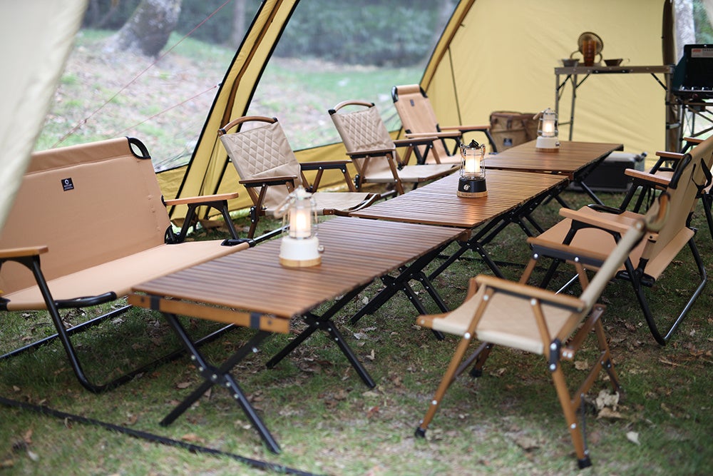 高さは約2m。圧迫感のない天井で伸びやかに活動できる、ストレスフリーな空間。天井が高い事でテント内の移動はもちろん、腰を曲げず立ったまま移動や着替えを行うことができ快適に過ごすことが出来ます。広々としたリビングルームは、ファミリーやグループでのくつろぎ空間にぴったりです。