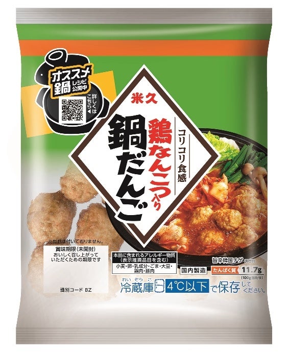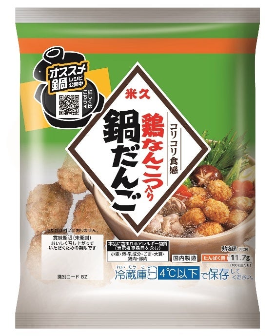米久株式会社(静岡県沼津市)は、人気のロングセラー商品「肉だんご(平袋)」シリーズとしてお鍋にぴったりな「鶏なんこつ入り鍋だんご」を発売し、人気のお鍋のメニュー提案をします。