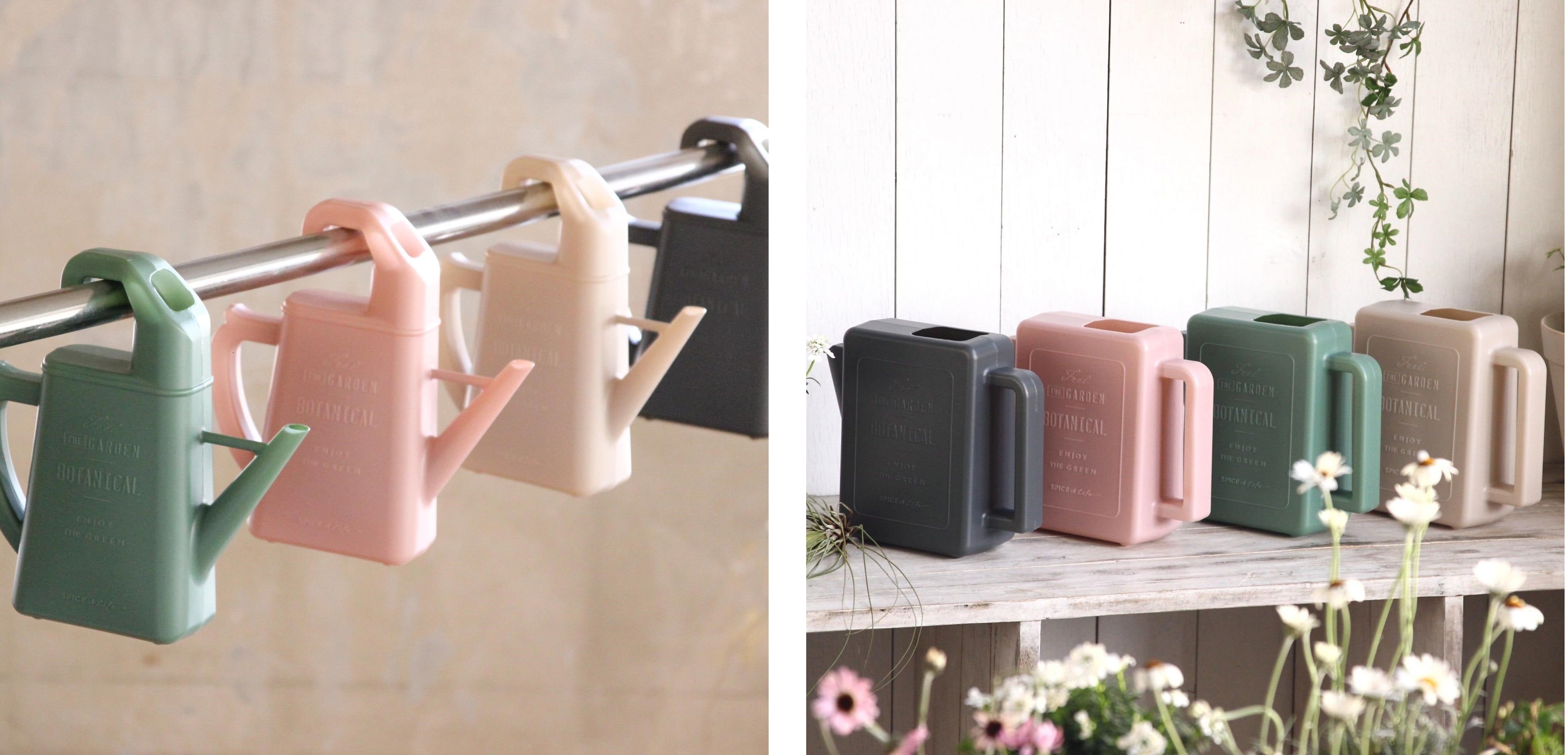 4色で展開するニュアンスカラーのジョーロはそのまま置いておくだけでもお部屋やお庭を素敵に彩ります。今年の春はおうち時間に緑を取り入れて、ガーデンライフを楽しんでみませんか。
