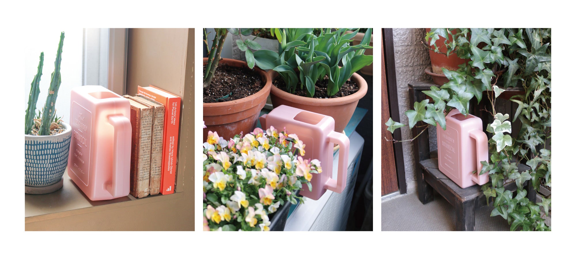 持ち手と注ぎ口がティーポットのようなデザイン。おうち時間で植物を育て始めた方に向け、お部屋に馴染むような可愛らしいフォルムにしました。収納もしやすいスリムボディーで倒れにくいように底広がりの形状にしています。