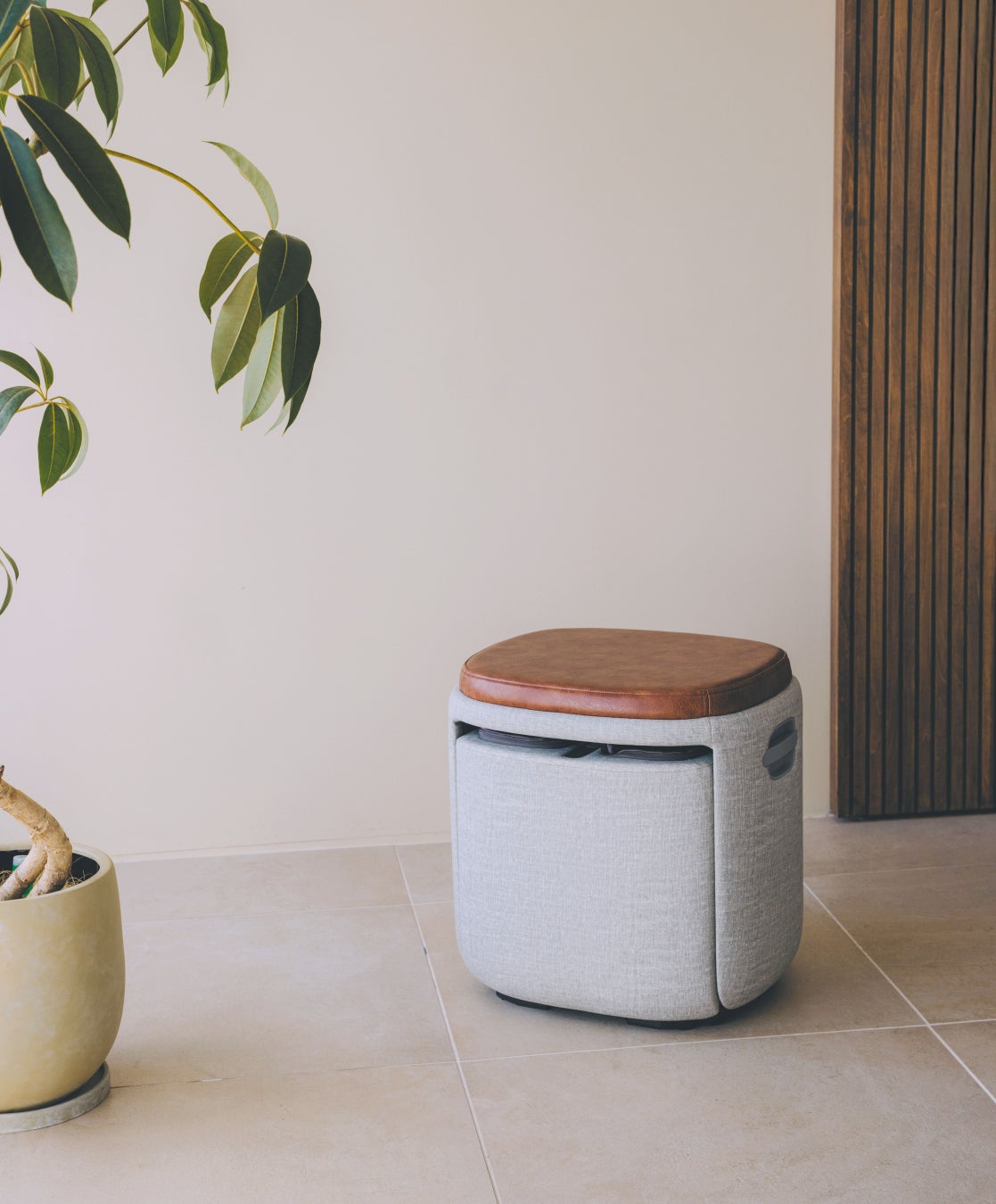 人気フットマッサージャー【3Dフットマッサージャー スツール】に、〈ブラウン×ライトグレージュ〉の組合せでインテリアに馴染む新色が登場!