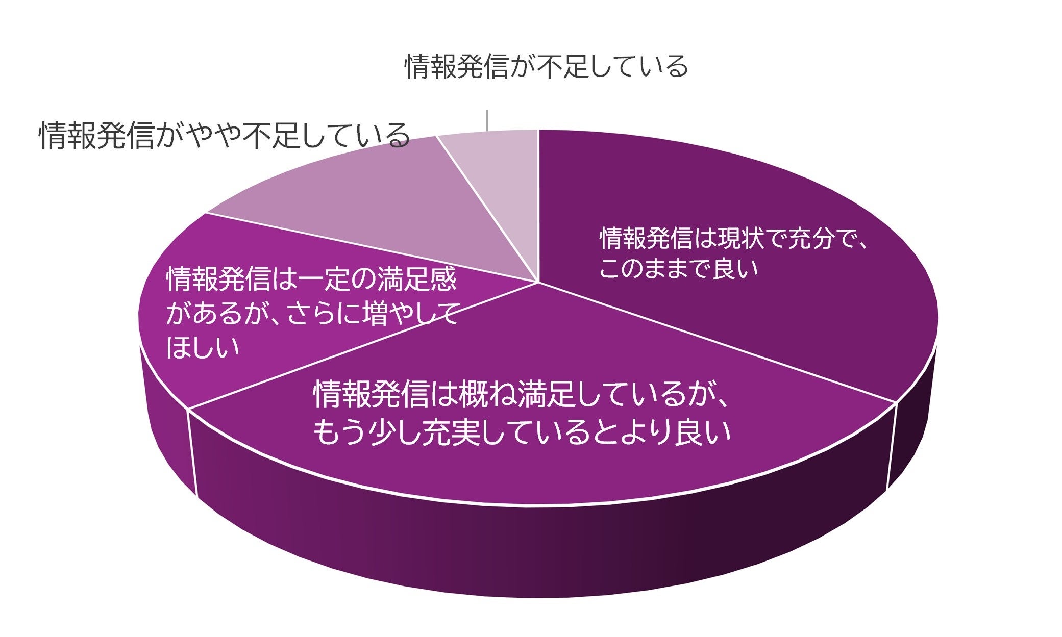 「もう少し充実していると良い」「さらに増やしてほしい」「やや不足」「不足」計が6割程度。各企業の情報発信が増えることで、より広いマーケットにリーチできるかもしれません。