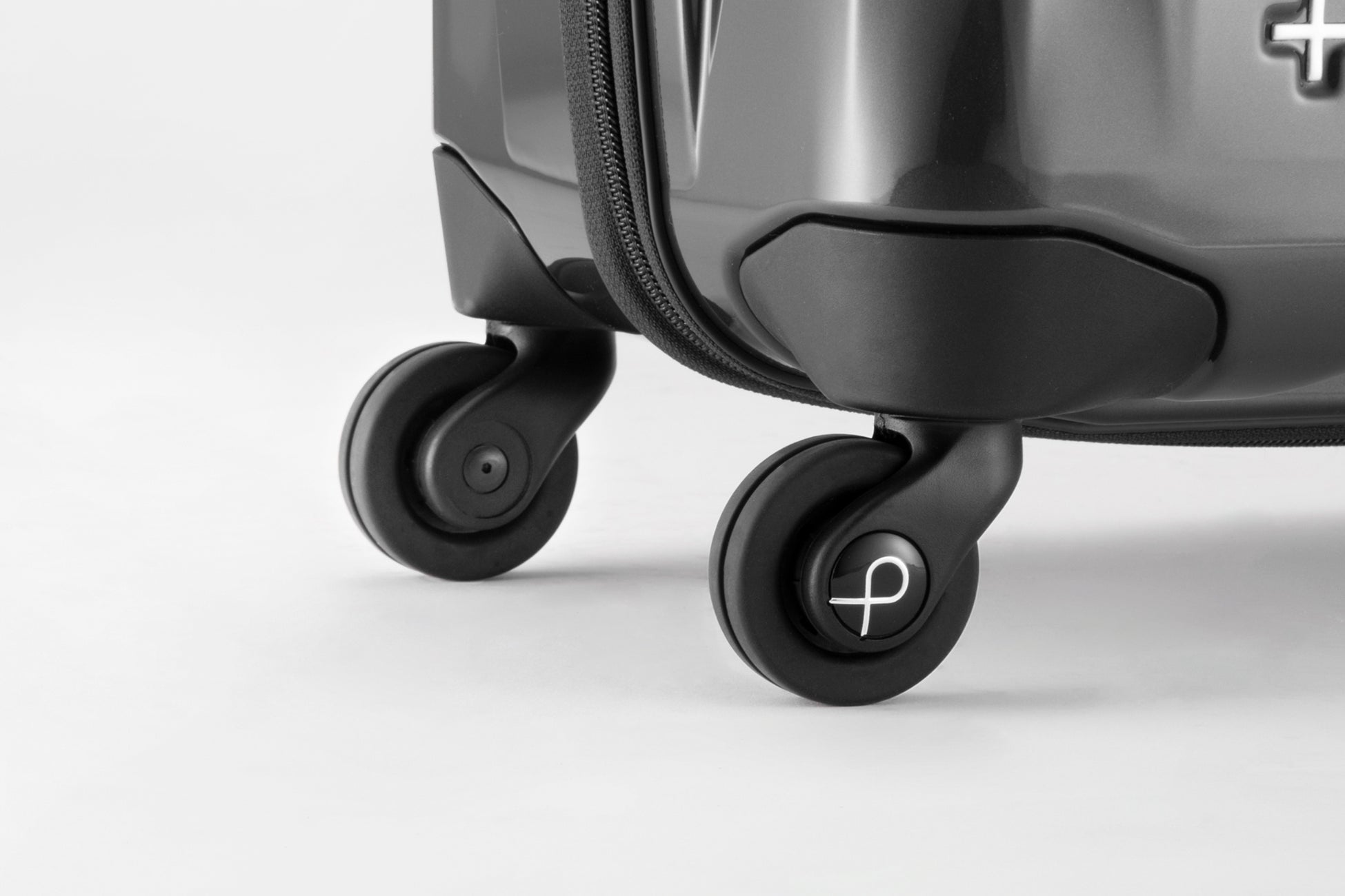 スーツケースの走行音を抑えるため、公的機関の検査に基づき、従来品に比べ約30%の体感音量軽減が証明された、独自開発の「サイレントキャスター®」を搭載しました。アスファルトなど、走行音が気になる場所でその威力を発揮します。
