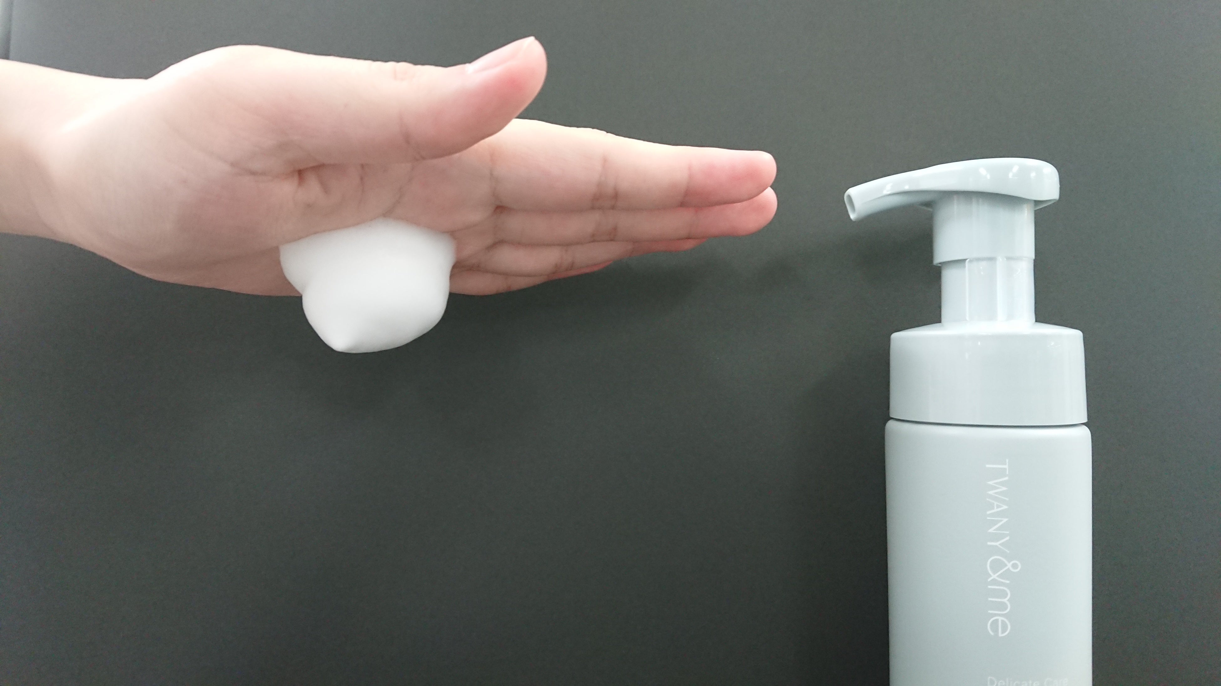 肌を濡らしたあと、適量の泡を手に取り、やさしく包み込むようにして洗います。