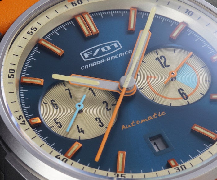 【F/01 Automatic Watch】は70年代の伝説のカーレース『カナディアン-アメリカン・チャレンジカップ』のレーシングカーにインスパイアされた腕時計です。このレースの特徴は、エンジン排気量上限なしの豪快なレースで、一流ドライバーも数多く出場しました。