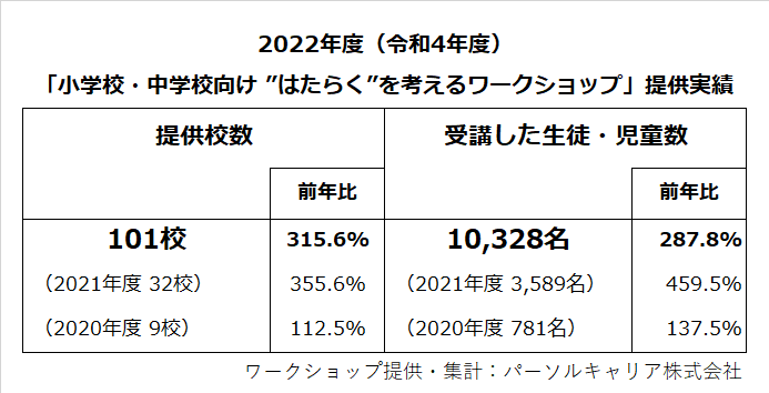 パーソルキャリアの小学校・中学校向けキャリア教育 出前授業「“はたらく”を考えるワークショップ」、2022年度(令和4年度)の提供実績を公開。年間提供が100校・10,000名を突破