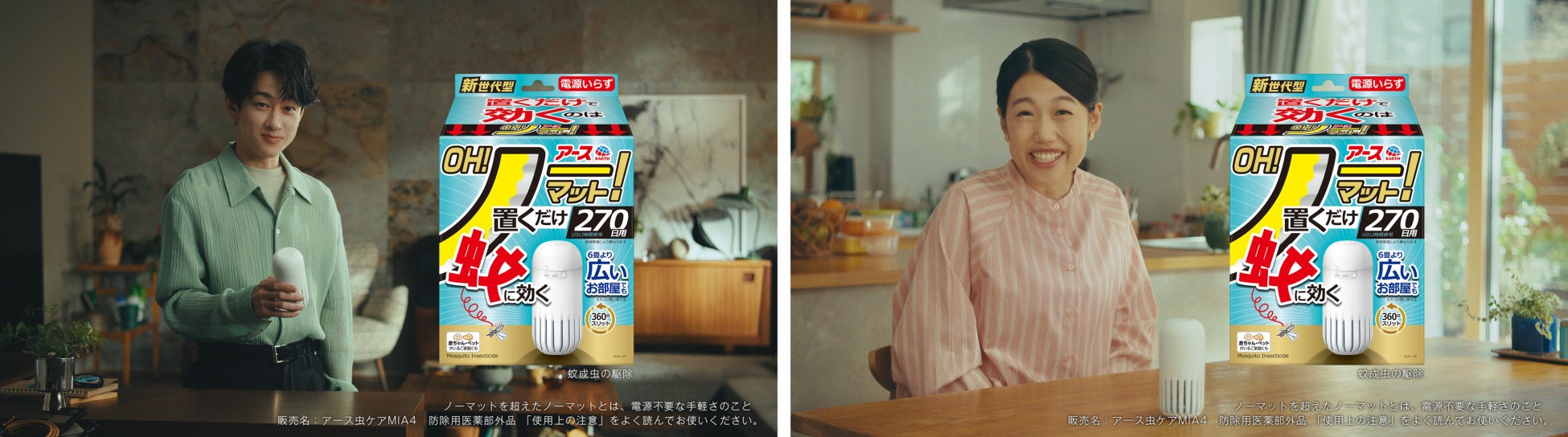 アース製薬株式会社(本社:東京都千代田区、社長:川端克宜、以下「アース製薬」)は、置くだけで 簡単に蚊の駆除ができる『アース OH!ノーマット』を2026年2月2日(月)に全国で発売しました。 発売に併せて、CMキャラクターとして横山裕さん、横澤夏子さんを起用した新TVCM「撃退成分横山」「撃退成分横澤」篇を2026年4月9日(木)より放送開始します。横山さんと横澤さんが蚊を退治する “撃退成分”になりきり、蚊に対する不満を“イヤーな感じ”でコミカルに表現する姿にぜひご注目ください。