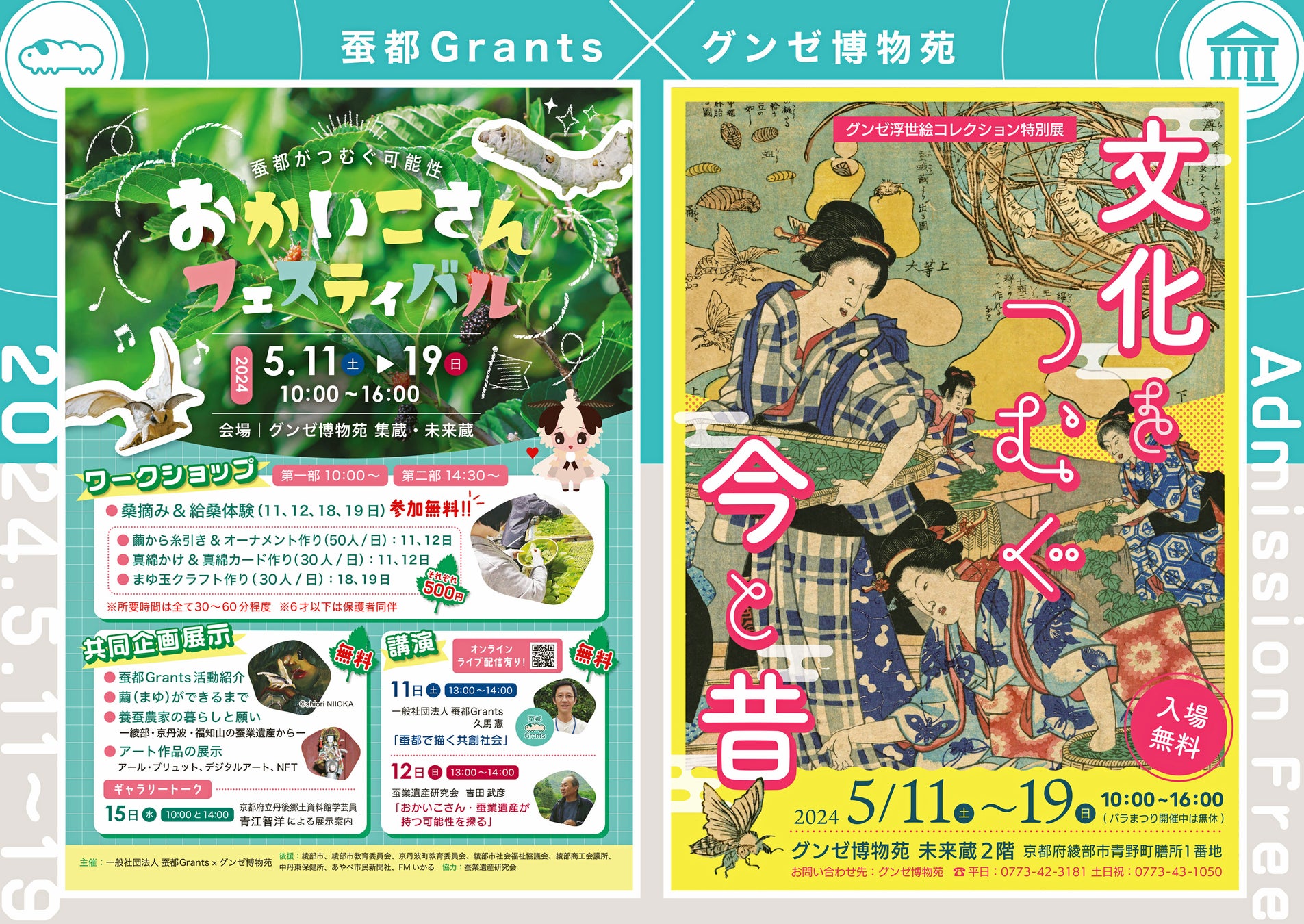 蚕都綾部にて、養蚕を通じ「文化をつむぐ今と昔」をテーマに、グンゼ博物苑、5/11から浮世絵特別展&おかいこさんフェスティバルを開催