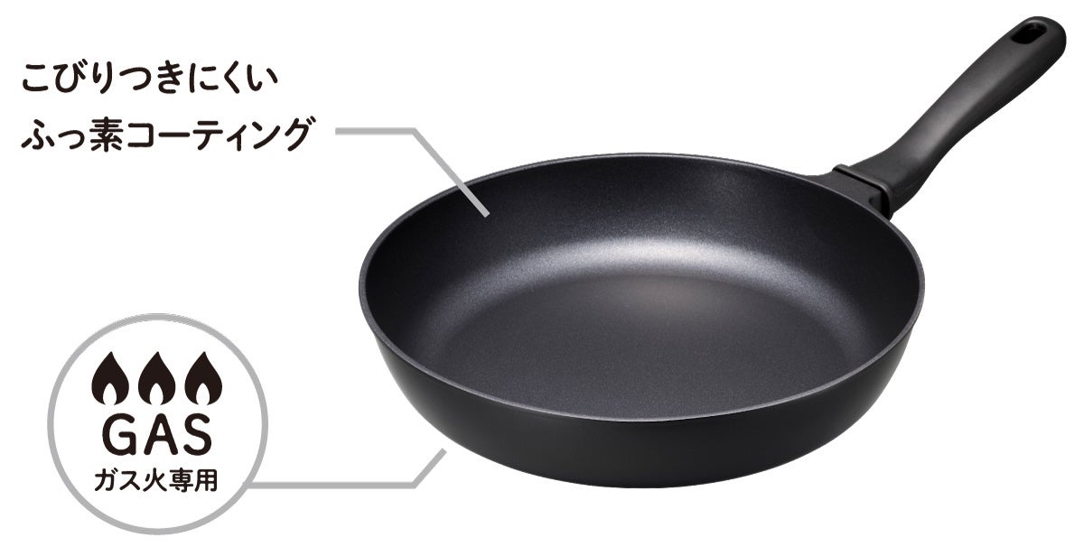 フライパンの内面には、ふっ素コーティングが施されているため、こびりつきにくくお手入れがしやすいです。