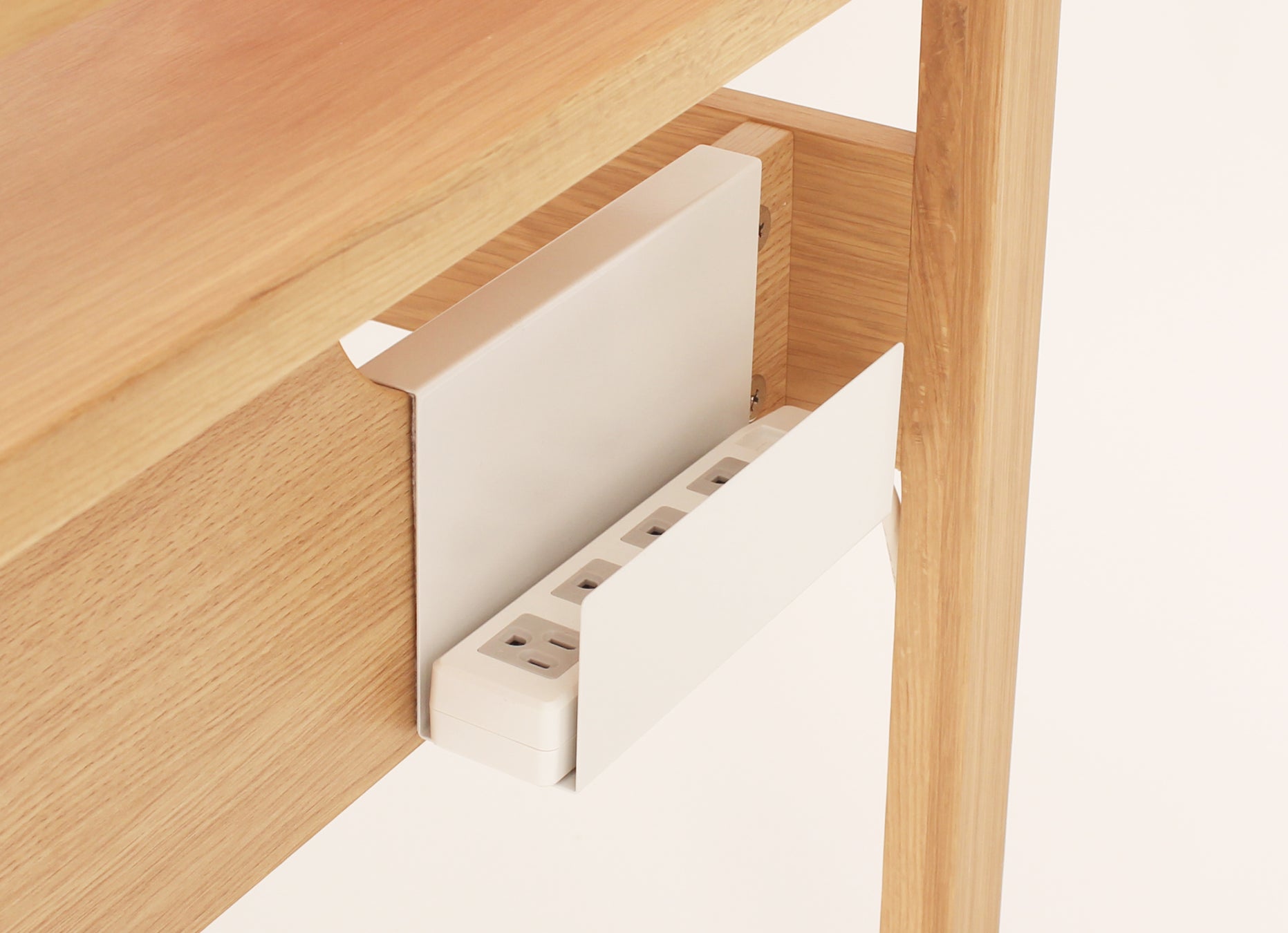 デスクには、手提げ袋や帽子、ランドセルなどを掛けられるフックを2個付属。さらに電源タップやルーターをまとめられる配線トレイも標準装備しています。これらは背面・側面など好きな場所に取り付けられ、毎日の学びや作業をスムーズにする“使いやすさ”へのこだわりを詰め込みました。