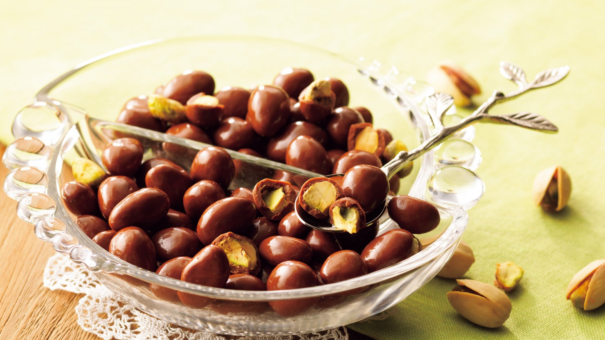 カリフォルニア産のピスタチオを、ミルクチョコレートでひと粒ずつコーティングしました。 ピスタチオ特有の食感と旨みが、すっきりとした味わいのチョコレートにベストマッチ。ついつい手が伸びてしまうおいしさです。