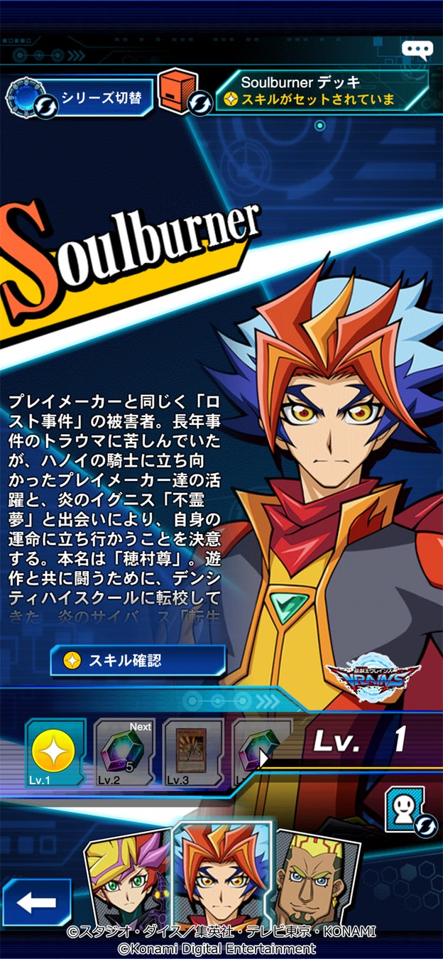 「遊戯王VRAINS」ワールドでは、「Playmaker & Ai」(CV: Playmaker/石毛翔弥、Ai/櫻井孝宏)、「Soulburner」(CV:梶裕貴)、「Go鬼塚」(CV:濱野大輝)が新たに登場!各キャラクターが駆使するエースモンスターの召喚演出をボイス付きでお楽しみいただけます。キャラクターは今後続々と追加予定!