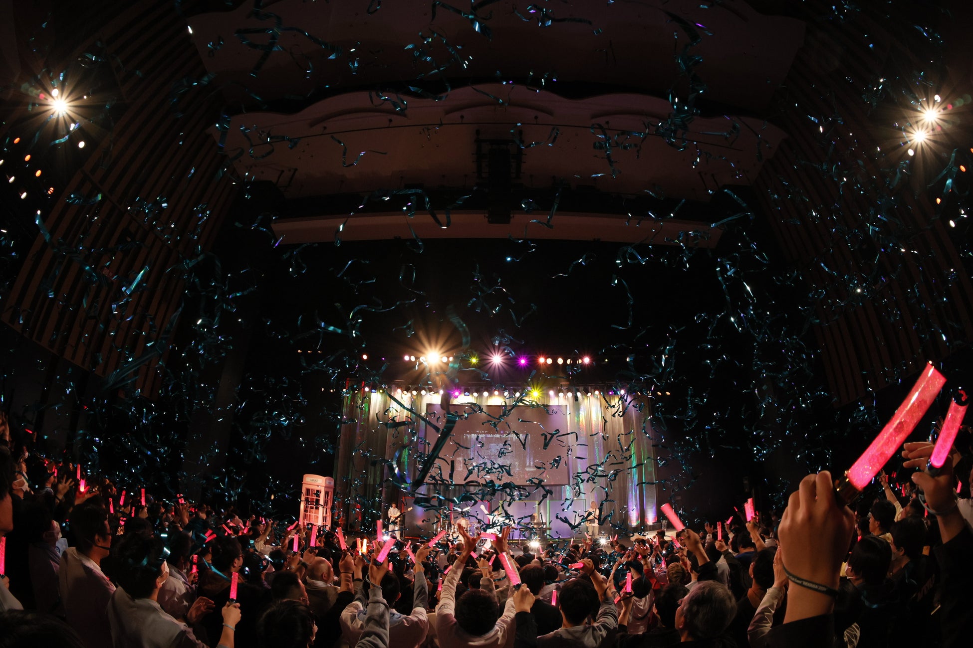 観客が異世界の世界観を堪能した後、会場は一気に現実へと移り変わる。「あゝ無情」(『スナックバス江』、明美役)が披露されたからだ。「スナックのお客さんになったつもりで盛り上げてちょうだいね!」と始まった同曲で、観客がタオルを“おしぼり”に見立てて振り回しながら合いの手を入れる光景は、本当に常連客がスナックバス江で明美の歌声を楽しんでいるようだった。