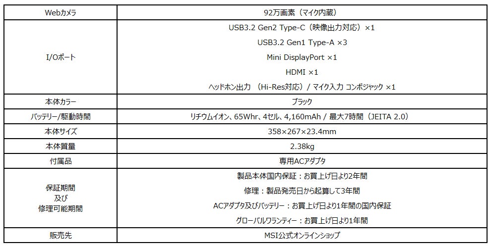 ・Vector GP66 12U シリーズ製品ページ:https://jpstore.msi.com/shopdetail/000000000415