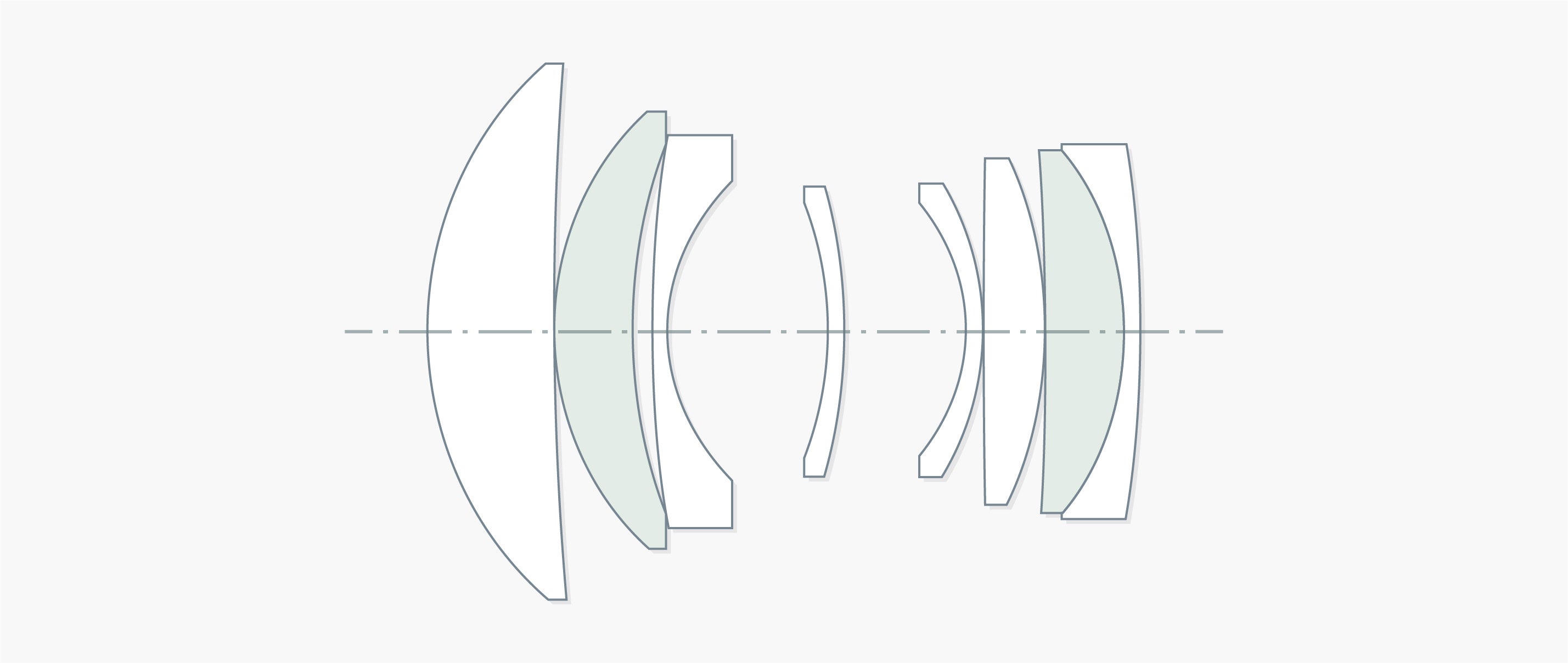 レンズ構成 : 6群7枚(高屈折レンズ2枚)