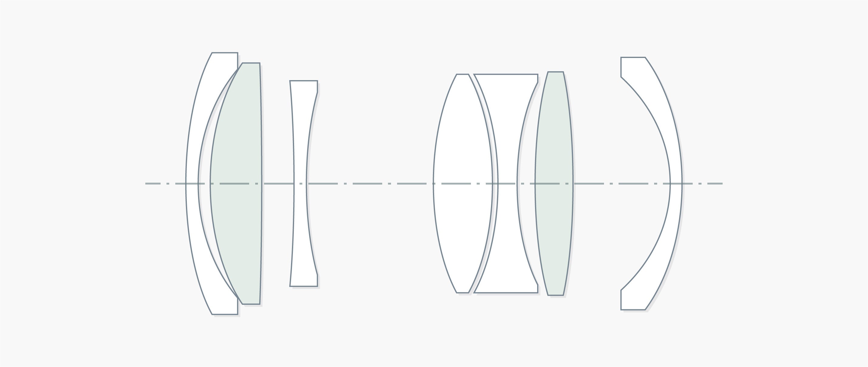 レンズ構成 : 7群8枚(高屈折レンズ2枚)