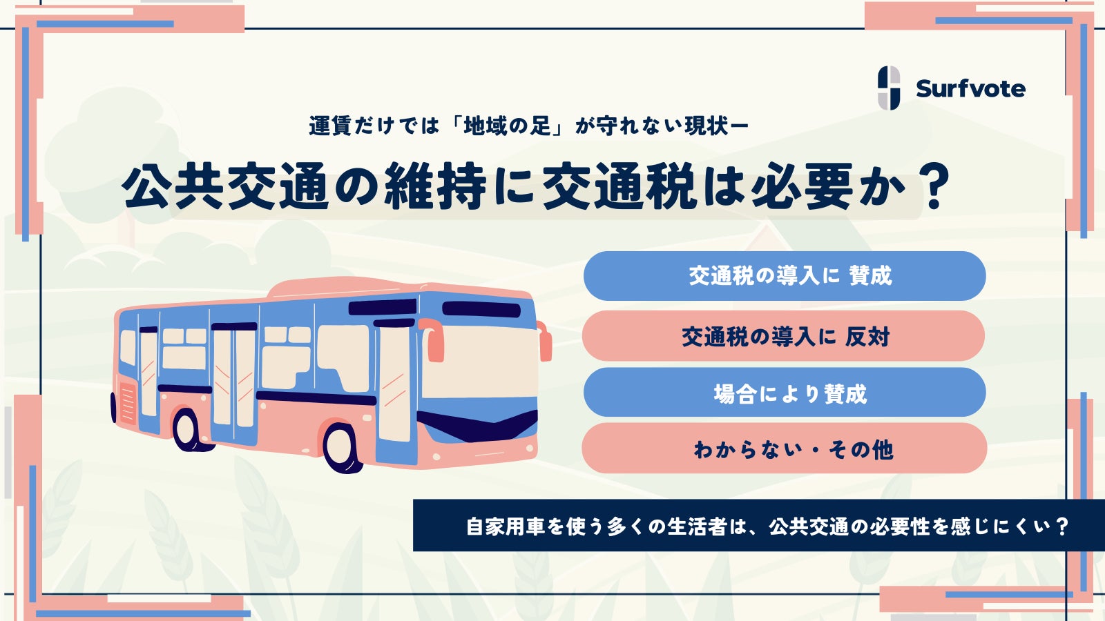 【投票開始】地域の公共交通を守るために“交通税”は必要?Surfvoteで意見を募集