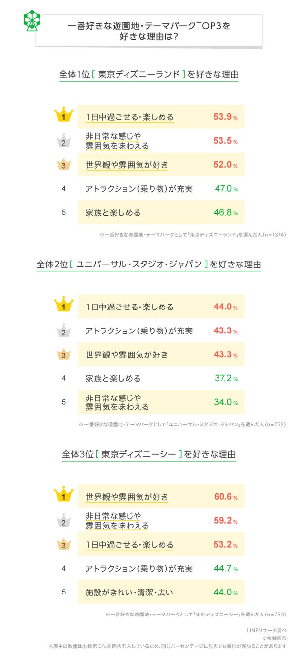 LINEリサーチ、全国の男女を対象に、一番好きな遊園地・テーマパークに関する調査を実施