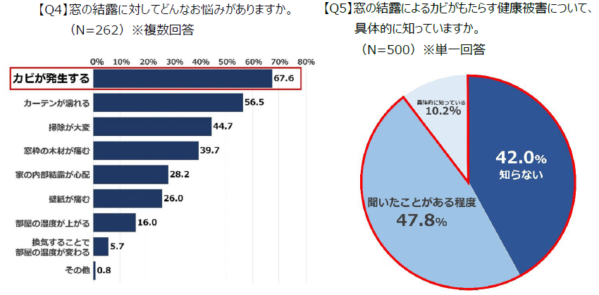 回答者の90%が知らなかった!窓の結露によるカビがもたらす健康被害について、