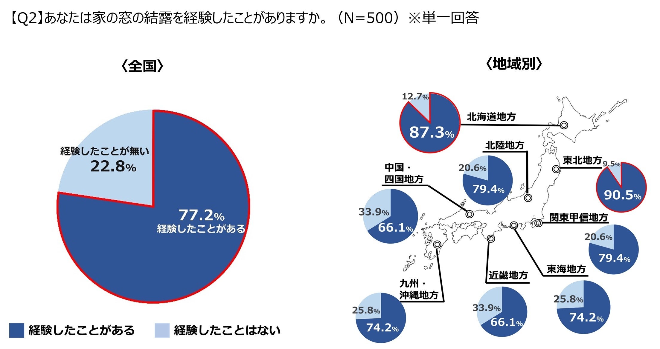 「窓と結露に関する意識調査」を実施 約80%の人が「窓の結露」を経験し、経験者の約70%が悩んだことがあると回答/結露がもたらす健康被害について具体的に知らない人は全回答者の約90%に