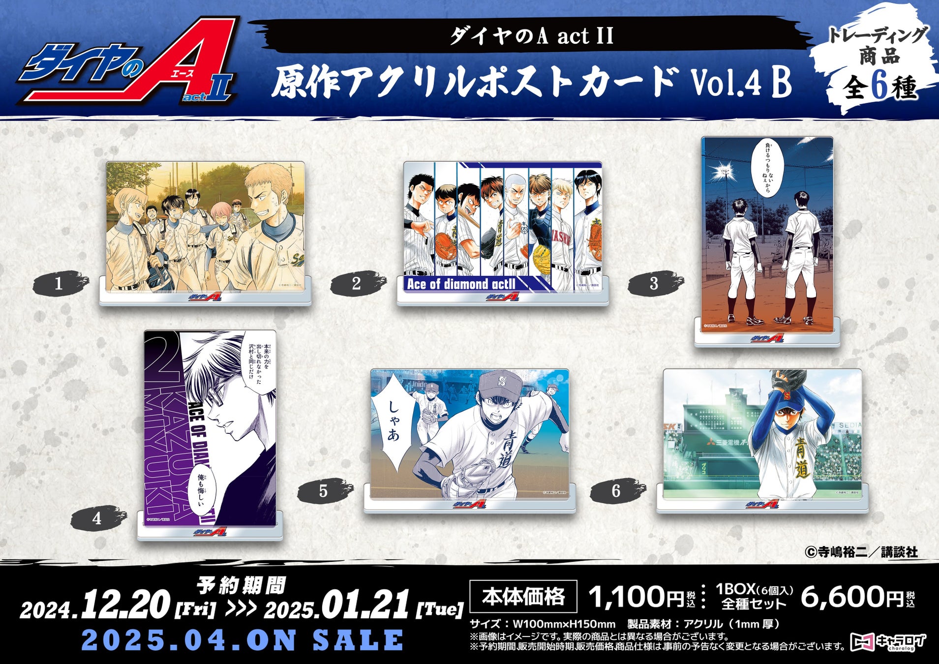 株式会社ディ・テクノ(本社:東京都港区 代表取締役社長:市原 高明)は、2024年12月20日(金)12:00よりダイヤのA act IIオリジナルグッズの予約受付を開始いたしました。