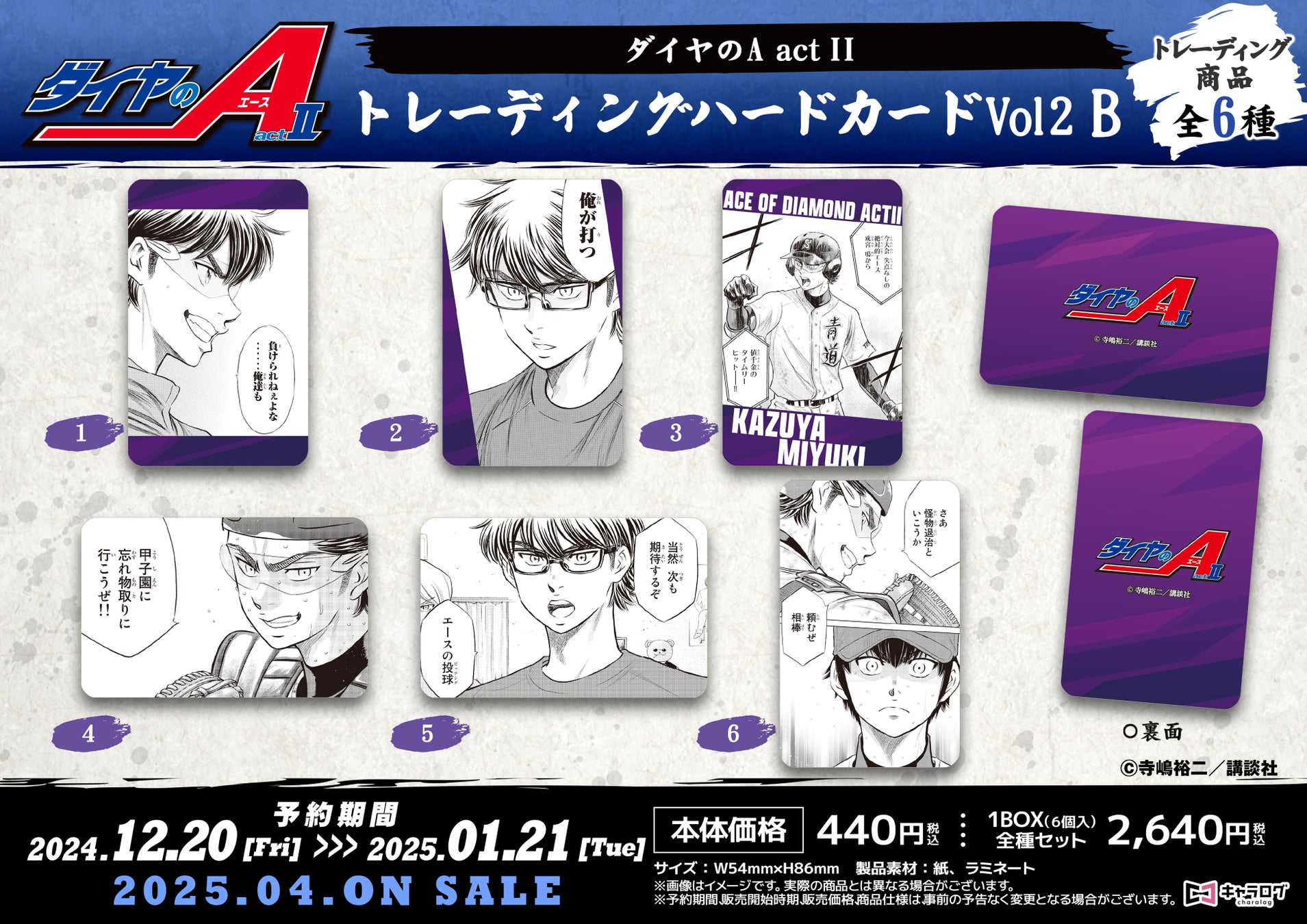 「キャラログ」にて、「ダイヤのA actII」商品を2,200円(税込・送料除く)ご予約ごとに、ミニフォトカード(全10種・ランダム)を1点プレゼント!