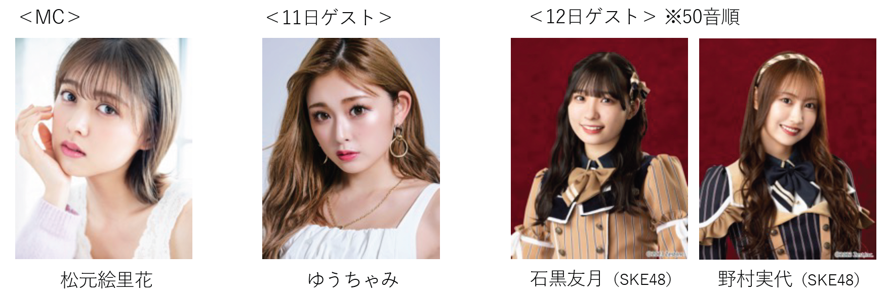 ブランド:新見本工場、尾州ロリィタ 他 ※50音順 ゲストモデル:石黒友月(SKE48)、岡崎紗絵、香川沙耶、川口ゆりな、川津明日香、鶴嶋乃愛、野村実代(SKE48)、ブラダ、松元絵里花、みりちゃむ、ゆいちゃみ、ゆうちゃみ 他 ※50音順 ゲスト:小田凱人、駆け抜けて軽トラ、北原里英、とうあ、なこなこカップル、山下幸輝 他 ※50音順 スペシャルゲスト:麻乃佳世、椿火呂花、麗たまき、千珠晄、青山雪菜、鳴海じゅん、美乃杏花、綺華れい、珠まゆら、 真衣ひなの、鷺世燿、七咲心奏、伊藤凛 メインアーティスト:iScream、平原綾香、FRUITS ZIPPER 他 ※50音順 MC:土佐兄弟 コンテンツ内容:ファッションショー、アーティストライブ、パートナーステージ、トークショー、ブースほか 主催: 東京ガールズコレクション実行委員会 共催:一宮市、BISHU COLLECTION produced by TGC実行委員会 協力:BISHU FES. 実行委員会 公式メディア:girlswalker 企画/制作:株式会社W TOKYO |