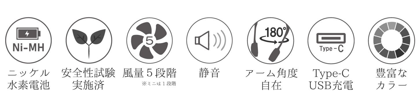 誰もが安心して使えるようにダブルファンは全てのモデルにおいて、安全性の最も高く、信用のおける「ニッケル水素電池」を使用しています。飛行機での機内持ち込み、預け入れ荷物ともに制限がなく高い安全性を追求しました。また、「一般財団法人 日本文化用品安全試験所」による安全性テスト実施済。安心してご使用いただけます。
