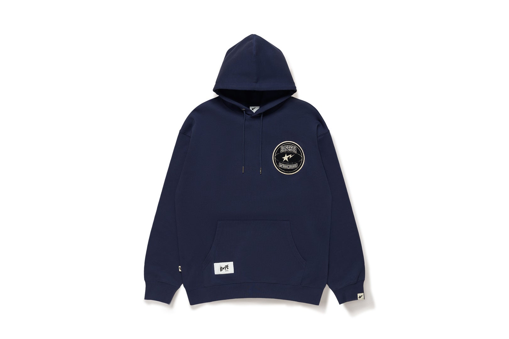 Tシャツ、プルオーバーフーディー、バーシティジャケット、スウェットパンツ、ニットキャップ、フットウェア、BAPEX®で構成され、いずれも上質な素材を使用しました。特別にデザインされたバーシティジャケットデザインのBAPE STA™にも注目です。