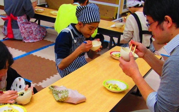 ワタミ株式会社(東京都大田区、以下ワタミ)は、4月2日、株式会社D&I(東京都千代田区、以下D&I)が運営する放課後等デイサービス「テラコヤキッズ ゆめ気球教室」(東京都大田区)と協同し、食品宅配サービスにおける新ブランド「PAKU MOGU」を使った食育教室を開催いたしました。「テラコヤキッズ ゆめ気球教室」は、さまざまな障がいのある子どもたちが通う教室です。カット済み・下ごしらえ済み食材とオリジナル調味料を使って、15分の簡単調理で主菜と副菜が完成するという「PAKU MOGU」の特徴を活かし、調理に不慣れな子どもたちに食に触れるきっかけを提供し、食事を作る楽しさを体験していただきました。今後も、食を通して可能な限り社会に貢献してまいります。