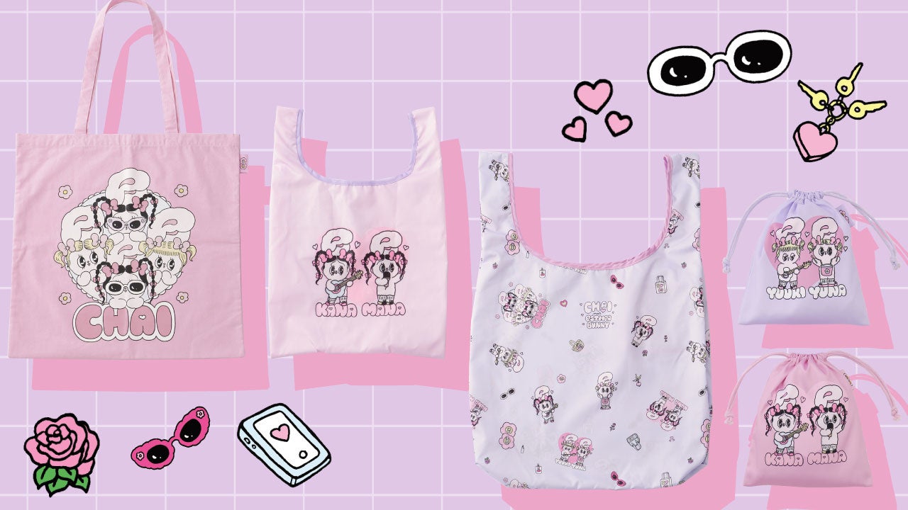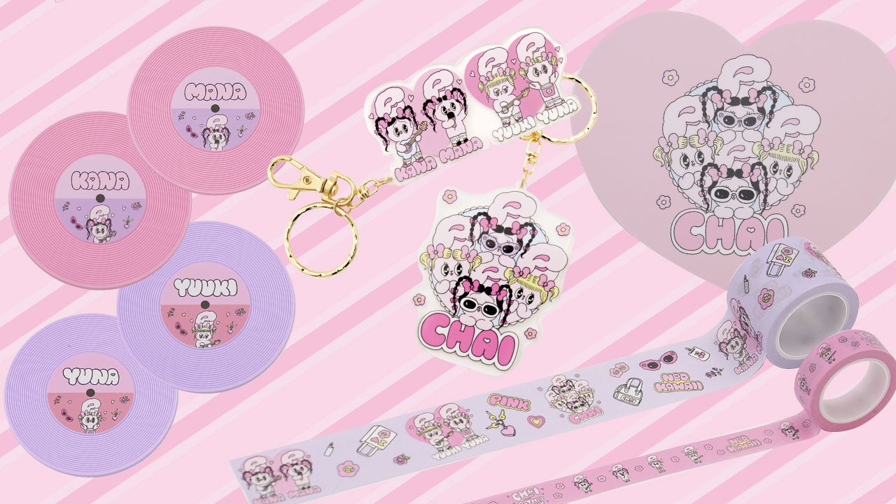 イラストは「NEOかわいい」「コンプレックスはアートなり」のコンセプトを掲げて活動するガールズバンド「CHAI」の4人が、イラストレーター「Esther Kim(エスター・キム)」が手がける「Esther Bunny」に扮した“かわいい”が詰まったデザイン。3COINSオリジナルデザインでエコバッグやミラーなどの他にも、CDケース入りステッカーやミニレコード風コースターなど音楽に因んだアイテムも展開。限定パーカーは3COINS原宿本店と公式通販サイト「PAL CLOSET」のみでの販売です。お気に入りのアイテムで“かわいい”世界観をお楽しみください。