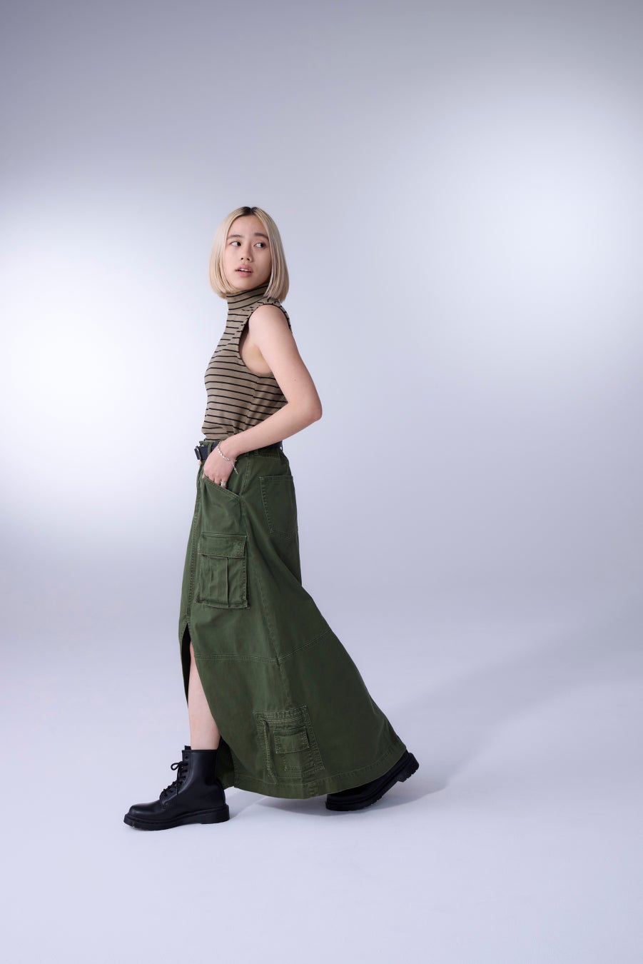 キャンペーンに登場するGapスタッフが着用しているのは、ミリタリー風の様々なポケットが施されているマキシスカート、ライトウェイト素材で動きやすいバギーシルエットのカーゴパンツ、ウエスト部分が絞れてフードが収納できるデザインや撥水性も魅力のナイロンパーカー、ポケットにGAPロゴが施されたユーティリティシャツ、ゆとりのあるリラックスした穿き心地のユーティリティカーゴパンツ、モダンカーキバギーフィットなど、クラシックなデザインに新しいテイストを加えた最新のカーキアイテムを着用しています。