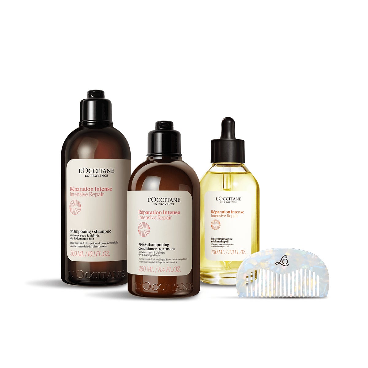 冬の乾燥ダメージを徹底補修。新しい年を艶やかで輝きあふれる髪へ。するんとツヤに満ちて、色あせない髪印象へ導くシリーズのヘアケアキット。洗いながら髪の内側まで集中ダメージ補修するシャンプー、髪のうるおいを閉じ込め、指通りなめらかに整えるコンディショナー。べたつかず素早く髪になじんで寝ている間に集中補修するヘアオイルの3点セット。