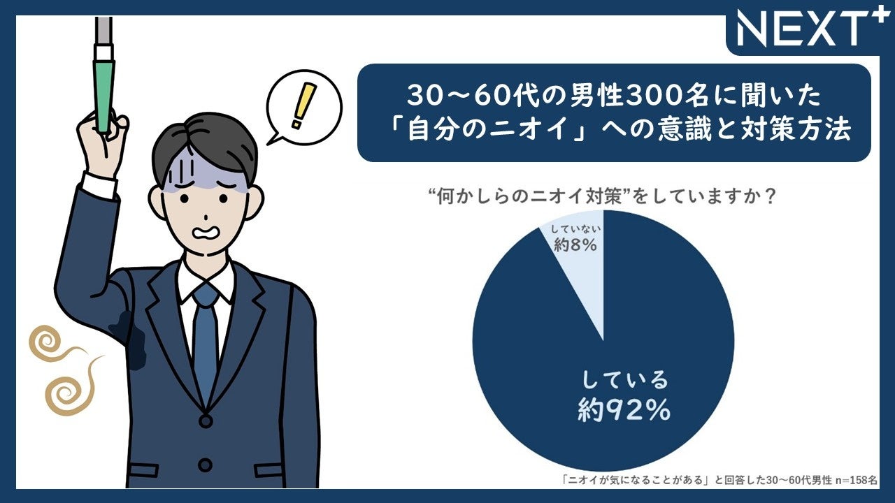 そこで今回、汗ばむ初夏に向けて多くの人が感じる「自分のニオイ」への意識と対策に関する実態を明らかにするため、30〜60代の男性300名を対象にインターネット調査を実施しました。あわせて、「皮膚ガス」の正体やその対策について、専門家による解説も交えながらお届けします。