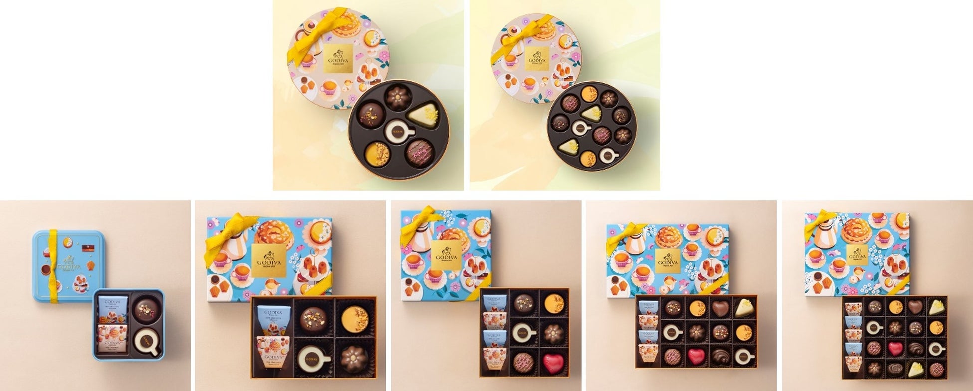 「ゴディバ アフタヌーン スイーツ セレクション」は6粒入(税込 3,780円)と12粒入(税込 6,264円)の2種類を、「ゴディバ アフタヌーン スイーツ アソートメント」は、4粒入(税込 1,728円)から21粒入(税込 7,776円)まで5種類をご用意しました。