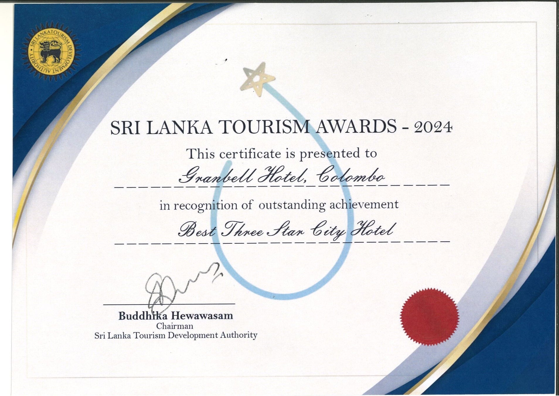 スリランカ観光局「ツーリズムアワード」にてグランベルホテル コロンボがベスト3つ星シティホテルを受賞