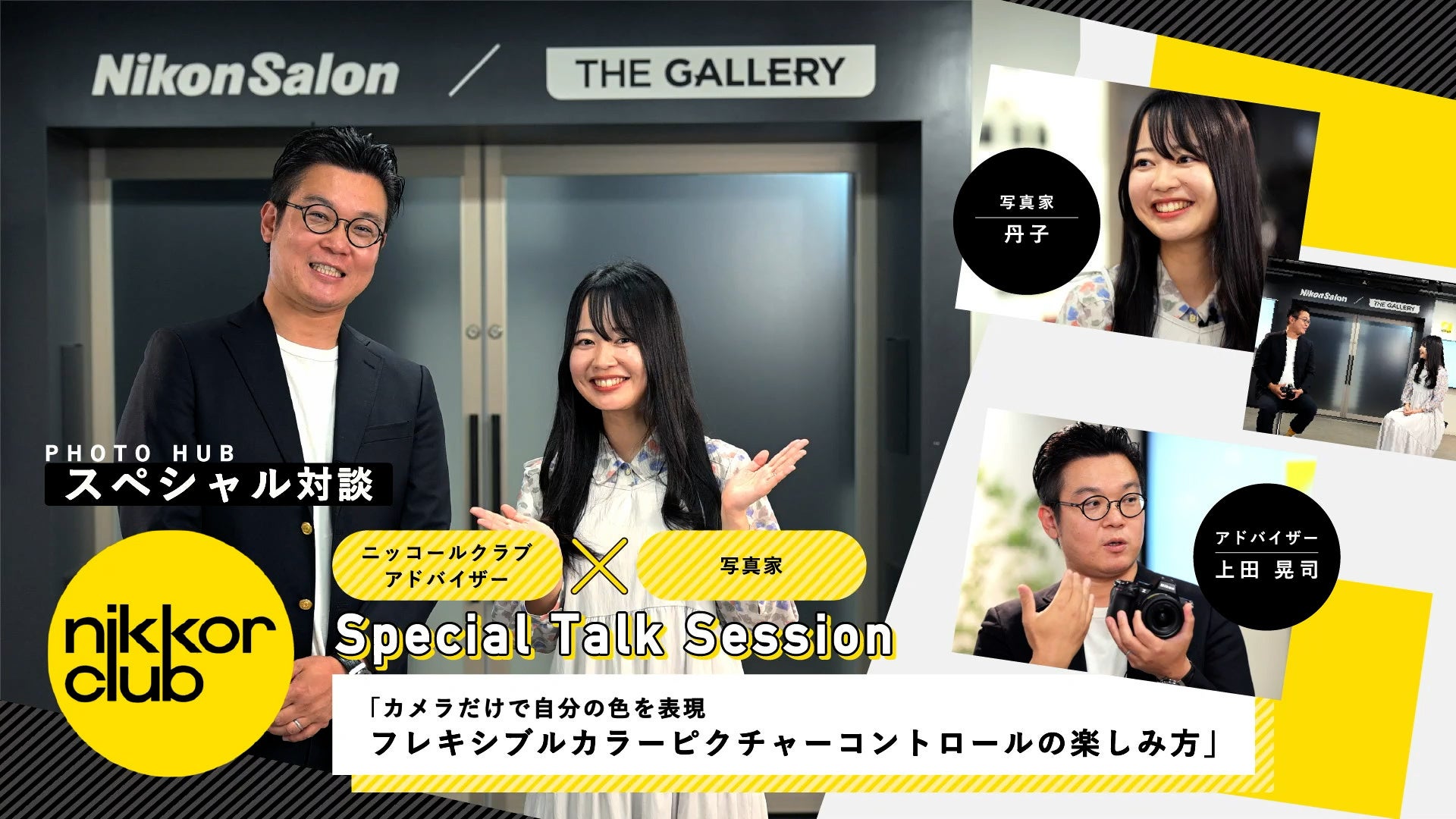 キャンペーン実施に合わせ、コミュニティサイト「PHOTO HUB by nikkor club」で「機材サークル」を担当しているアドバイザー上田晃司氏と、Z50IIのプロモーションに出演した写真家丹子氏による「スペシャル対談」動画をニコンイメージングジャパン公式YouTubeチャンネルにて公開いたします。