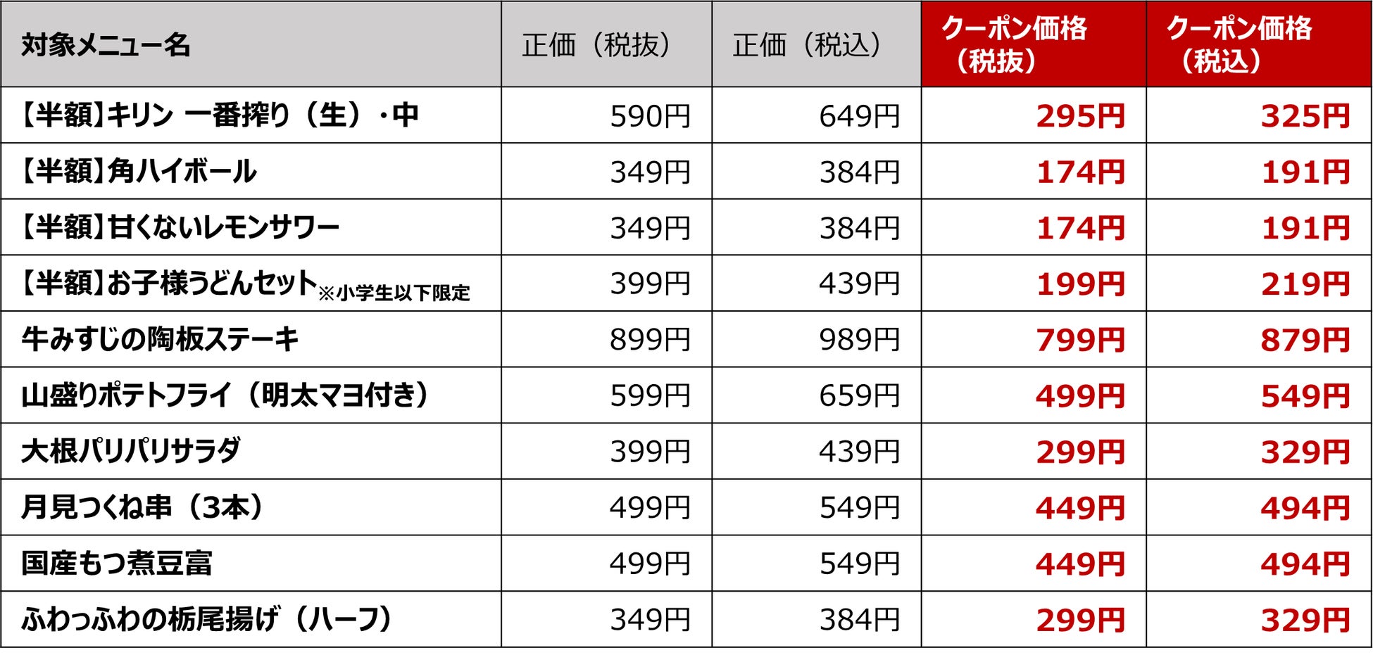 ■対象メニュー
