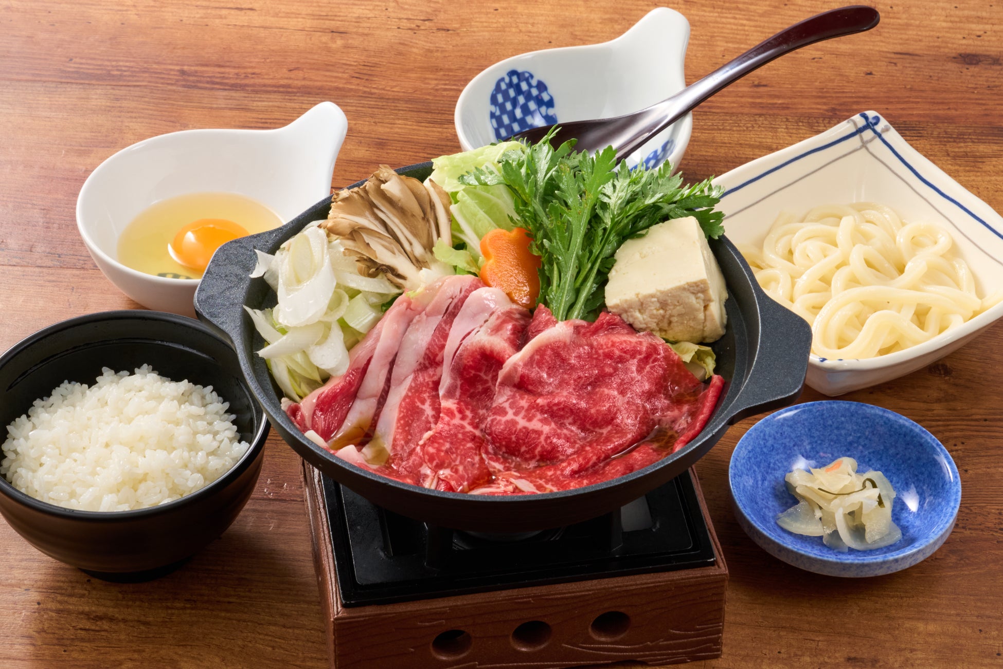 はこだて大沼黒牛のすき焼き鍋膳(御飯・半玉うどん・お新香付)