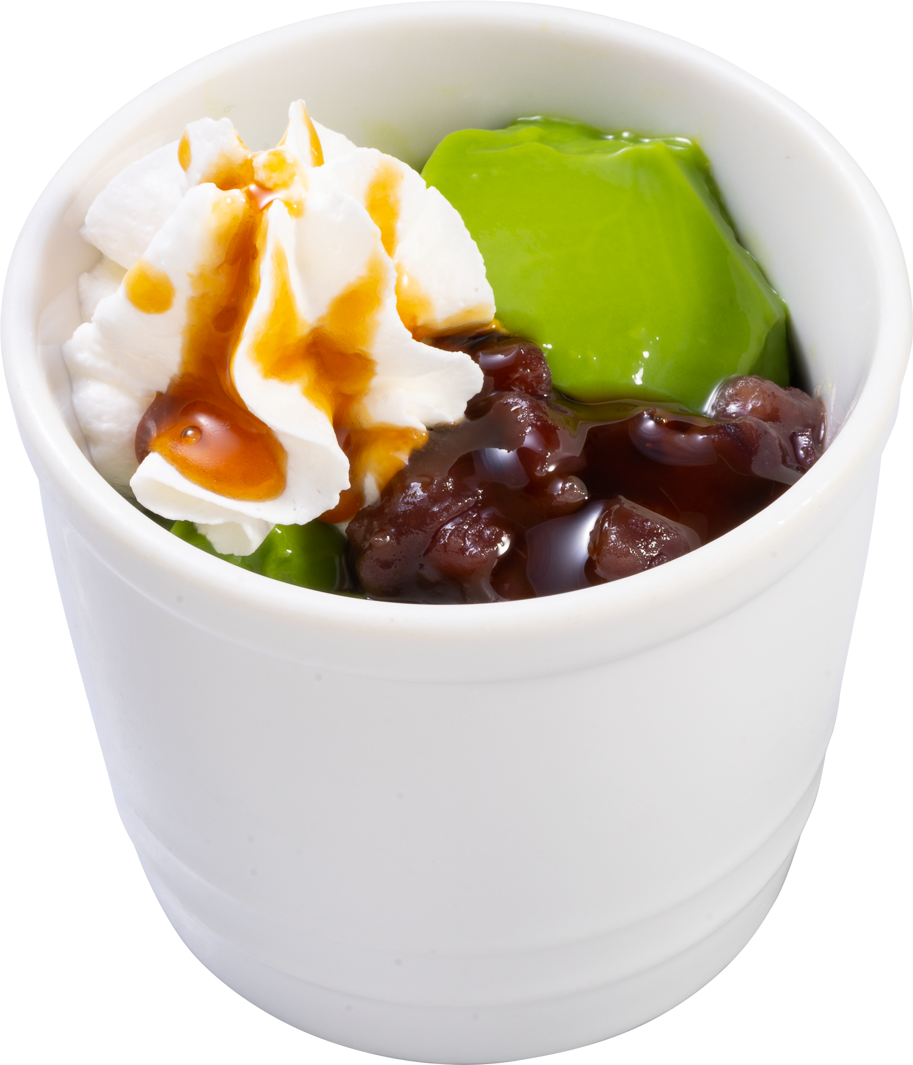 京都老舗茶園「丸久小山園」が、かっぱ寿司のスイーツのためにブレンドした特製抹茶を使用しています。北海道産小豆を使用し、程よい甘みのゆであずきと、沖縄黒糖の深みと風味豊かな黒蜜をトッピングしました。宇治抹茶の上品な香りと柔らかな苦みの心地よい余韻が楽しめるプリンです。
