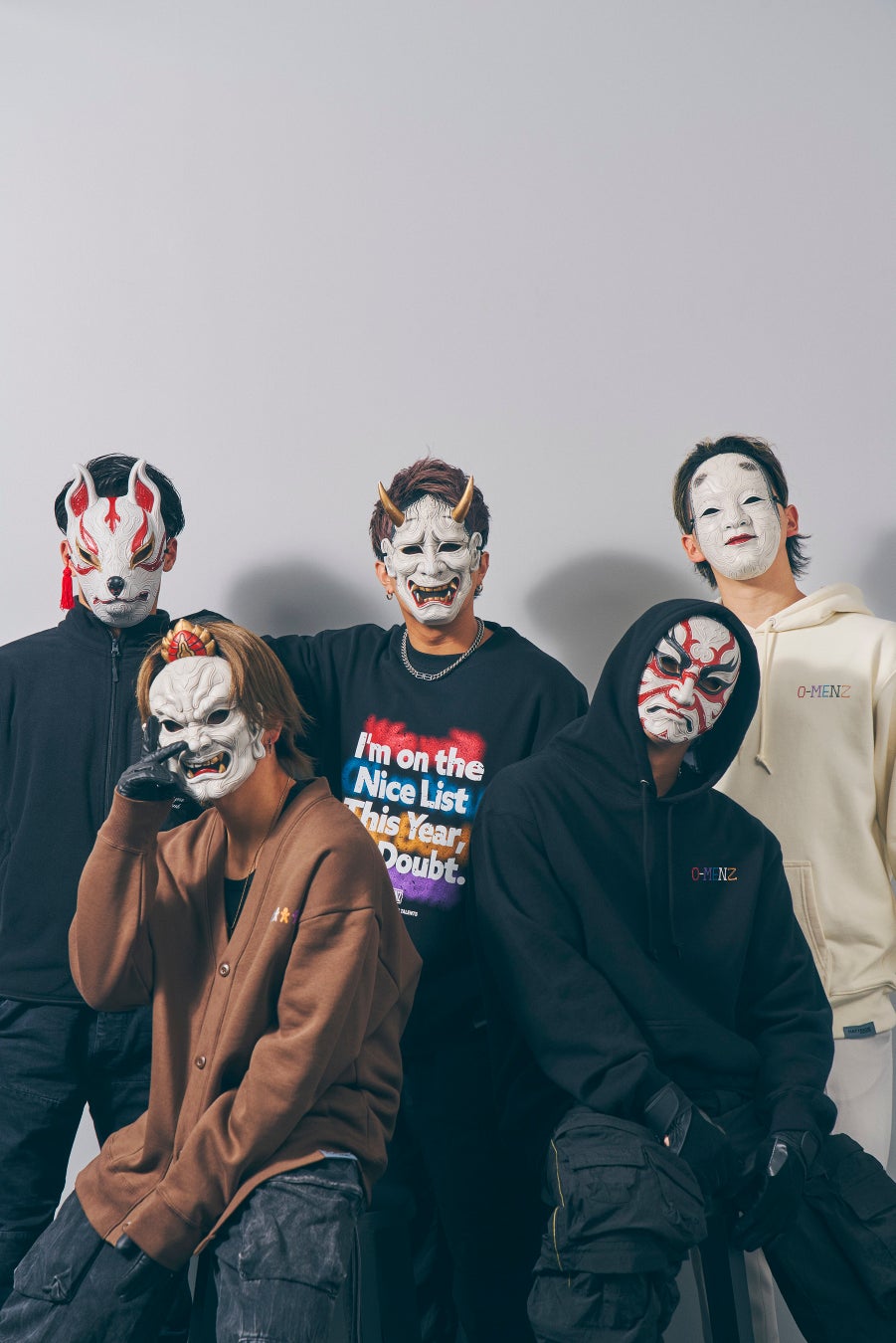 メンバー全員がお面を着用し、TikTokをはじめとしたSNSの総フォロワー数160万人超えを達成するなど、SNSから火が付いた謎のダンステロリスト集団「O-MENZ」。メンバーはプロのストリートダンサーで構成されており、ストリートダンスエンターテイメントをさまざまな角度から世間に仕掛けていくことをコンセプトに、アンダーグラウンドで磨かれたハイスキルなダンスと、和風のお面のミステリアスかつキャッチーなキャラクターが持ち味の唯一無二のグループです。