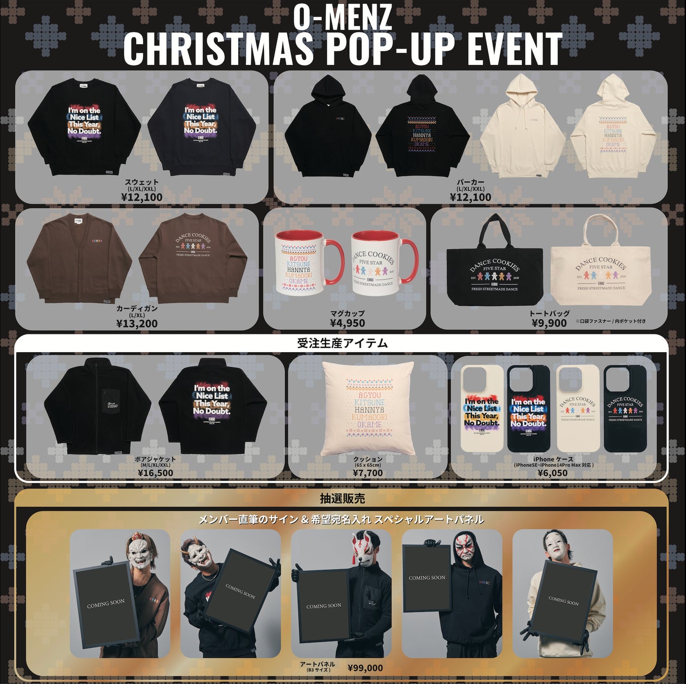 O-MENZから共犯者のみんなにとびっきりのクリスマスプゼントを用意したぜ!とびきりカッコよくて可愛いデザインのグッズばかりなので是非俺たちとお揃いで楽しんでくれよな!