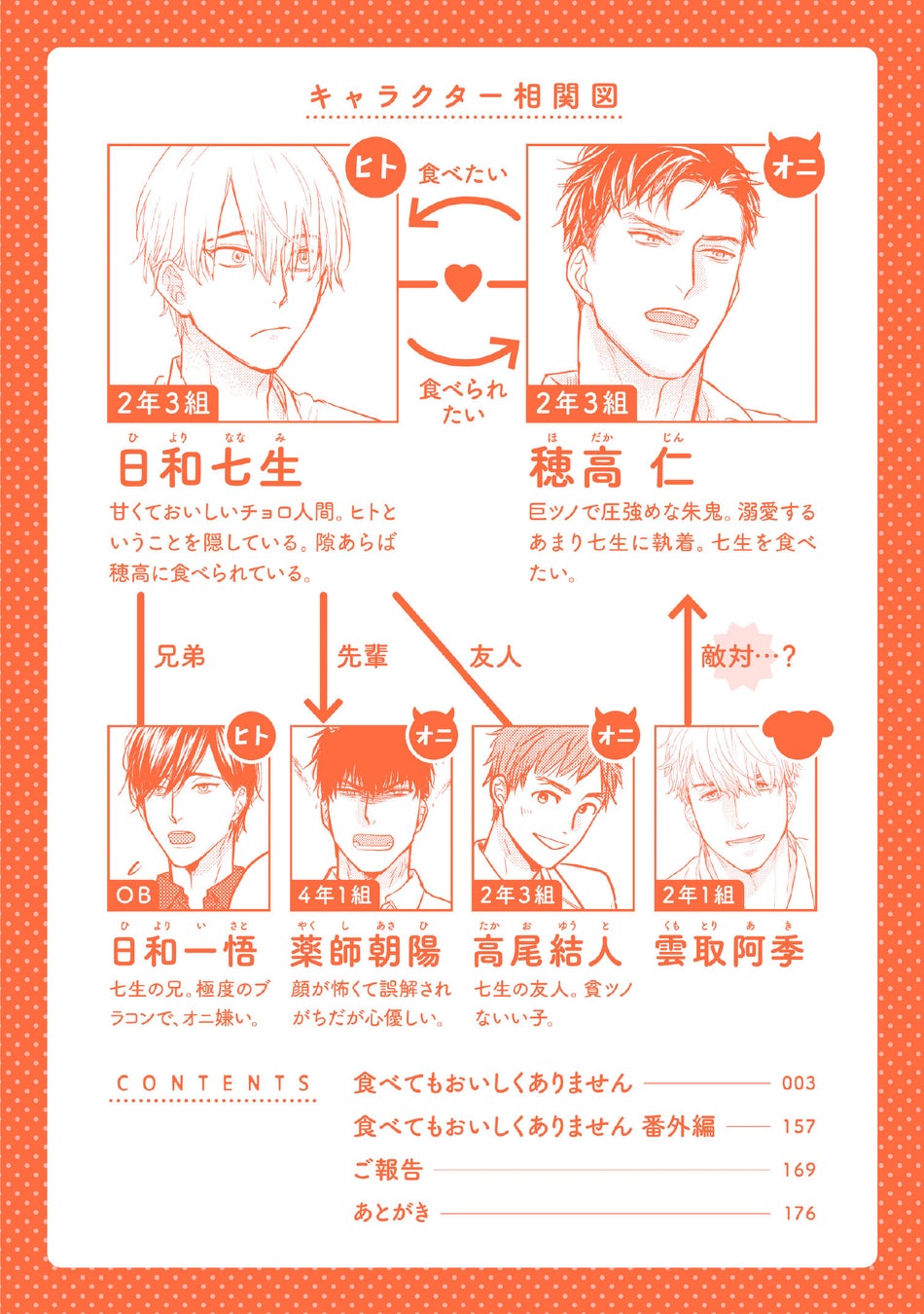 人間の方が希少な鬼の世界。人である日和は鬼にとって甘くて美味しい存在だ。しかしよりにもよって同級生の巨ツノで強引な鬼、穂高にヒトだとバレその上味見させろとキスされてしまい…。鬼を惹きつける厄介な体質で、危機的状況!? 抗えない本能と快楽の行方は――!?