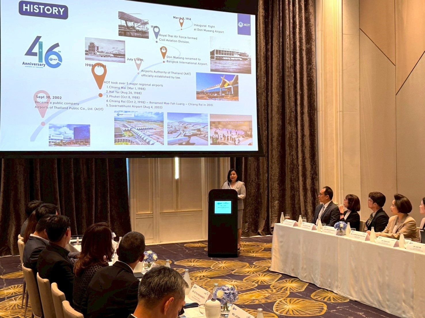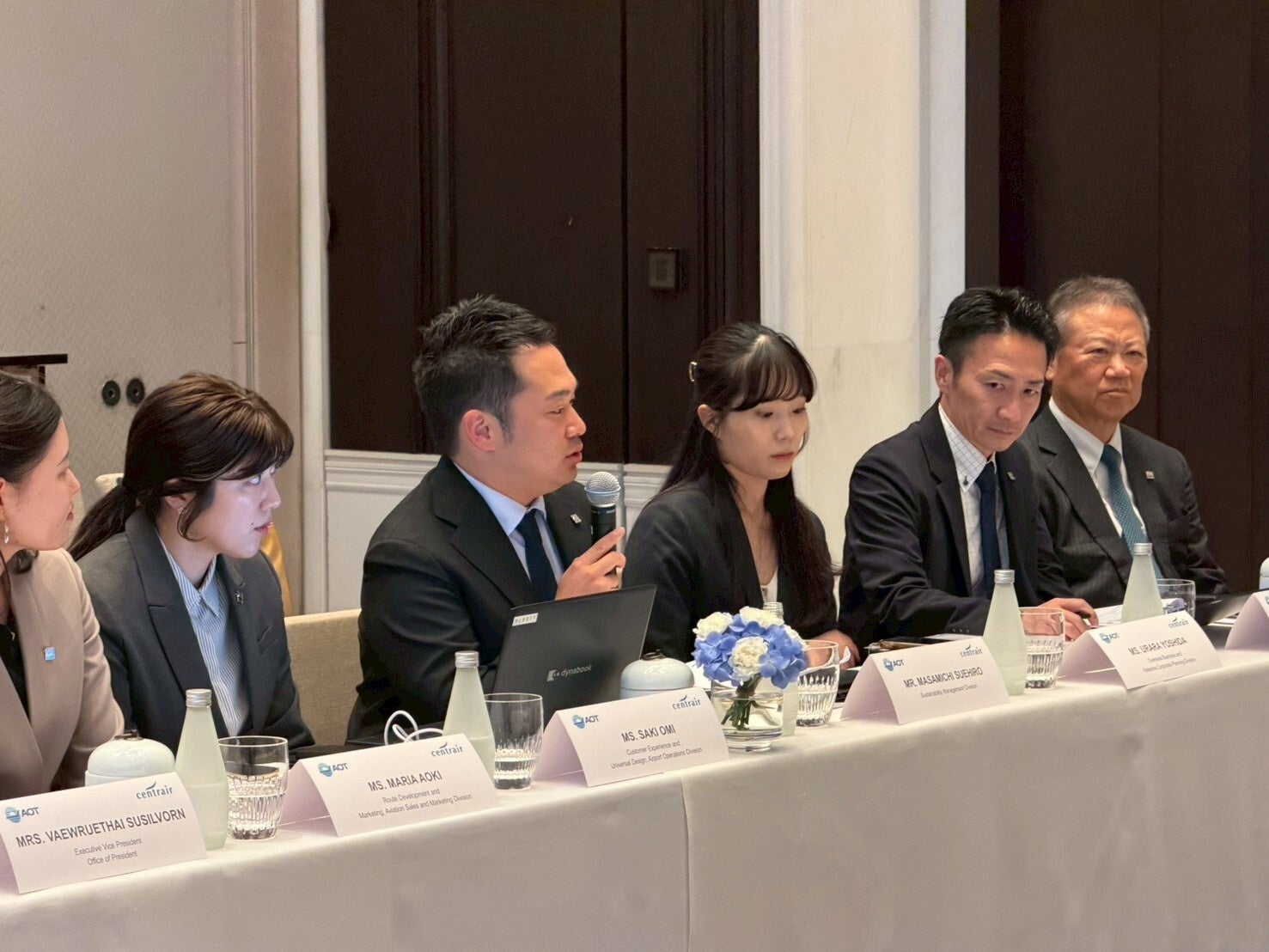 調印式はバンコク市内で行われ、中部国際空港株式会社代表取締役社長 籠橋寛典と、タイ空港公社のパヴィナー・ジャリヤティティポン社長代行(Paweena Jariyathitipong, Acting President)が署名しました。両社からは経営幹部や担当者が出席し、早速意見交換をするなど、今後の連携強化への姿勢を示しました。
