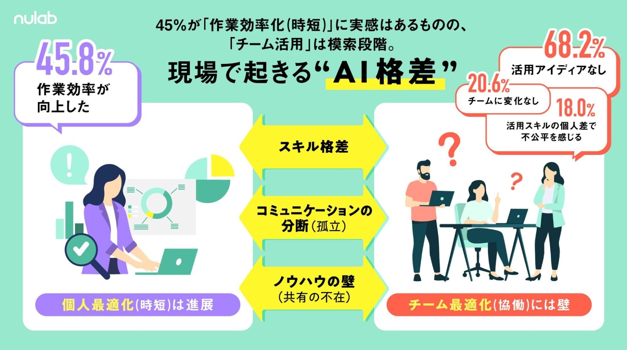 ヌーラボ、全国のビジネスパーソン1,000名に「AIのチーム活用」実態調査|AI活用は「個人止まり」約半数、現場で広がる“AI格差”と上司・部下の認識ギャップが明らかに